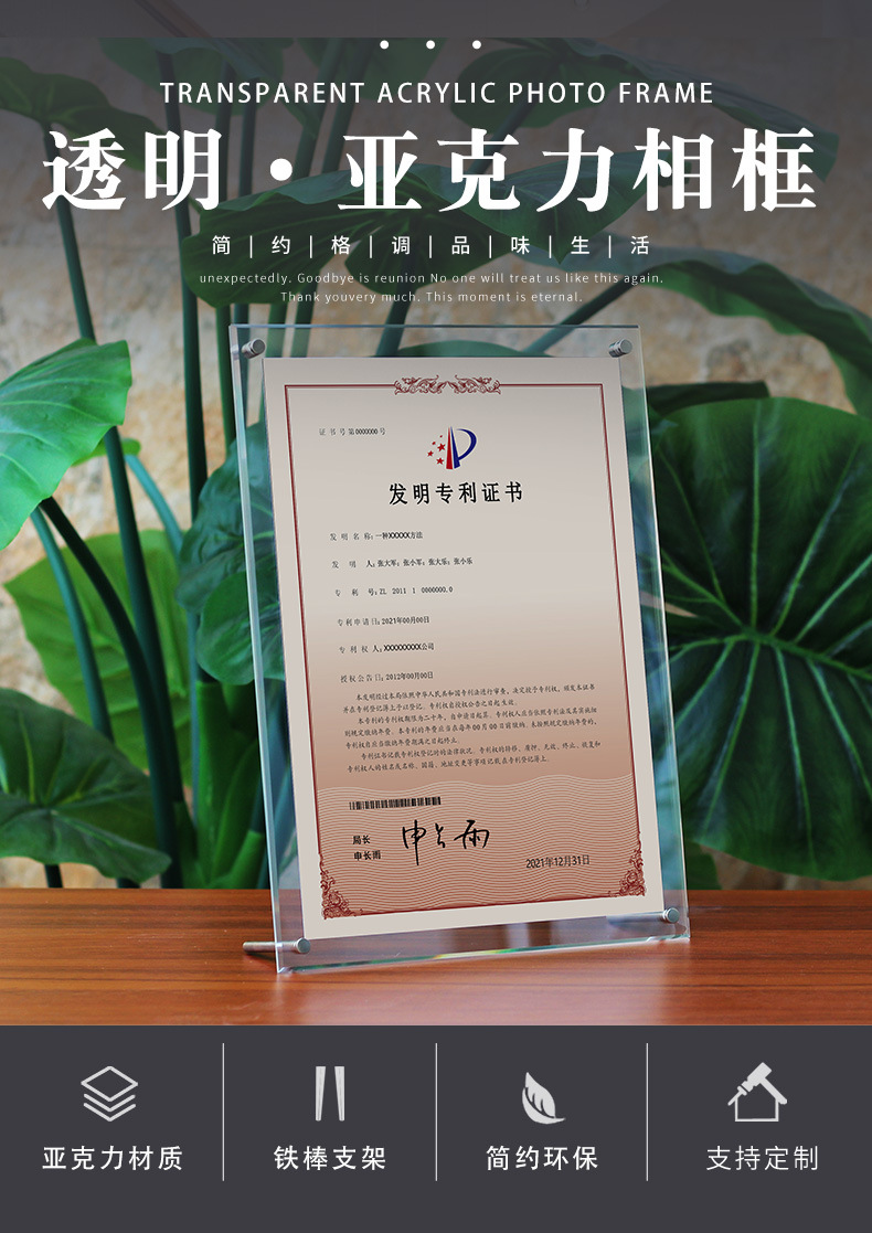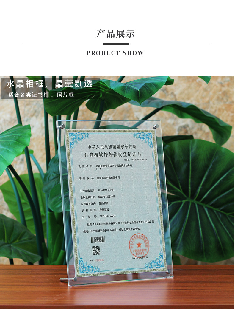 아크릴 A4 크리스탈 인증서 프레임 A 5inch 상장 사진 프레임 a3 사업자등록증 특허 전시 프레임 모던하고 심플한 디자인