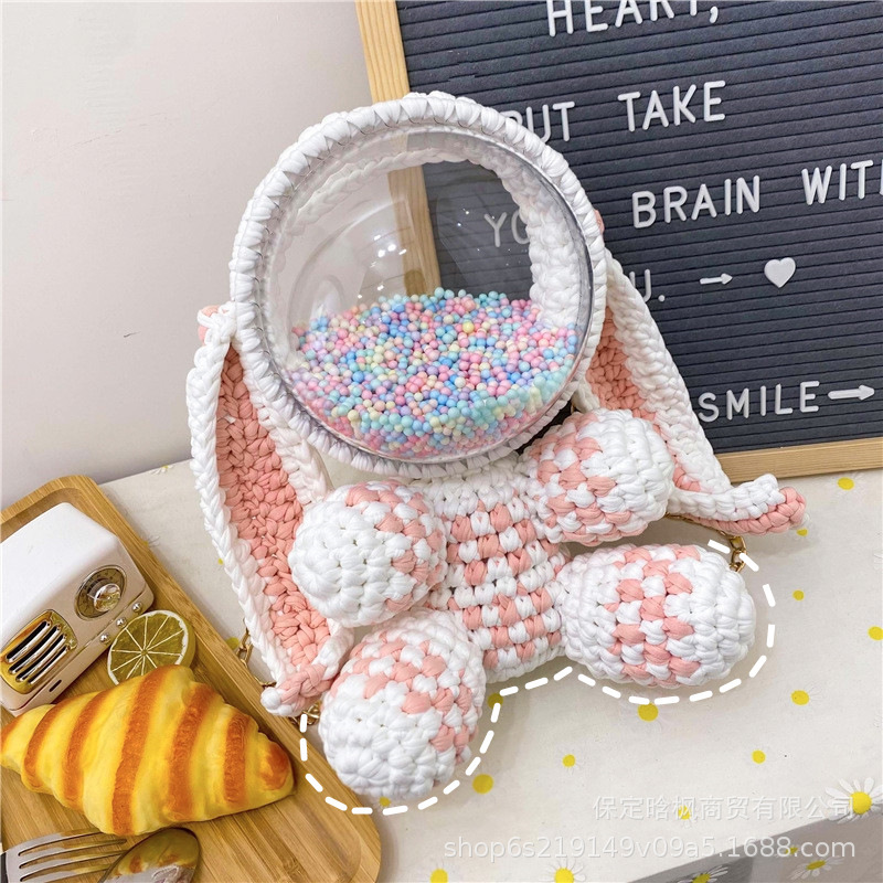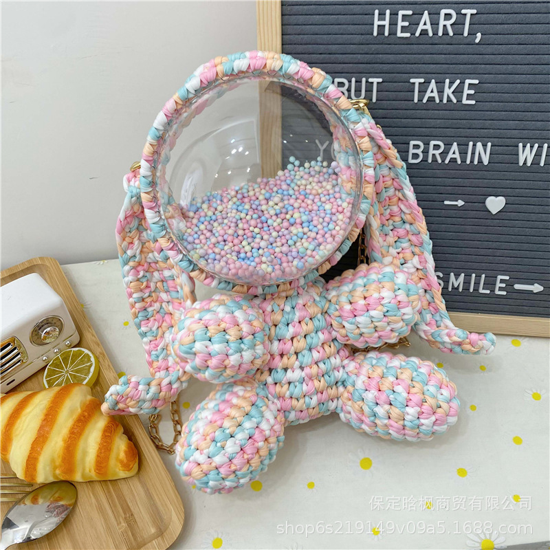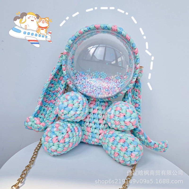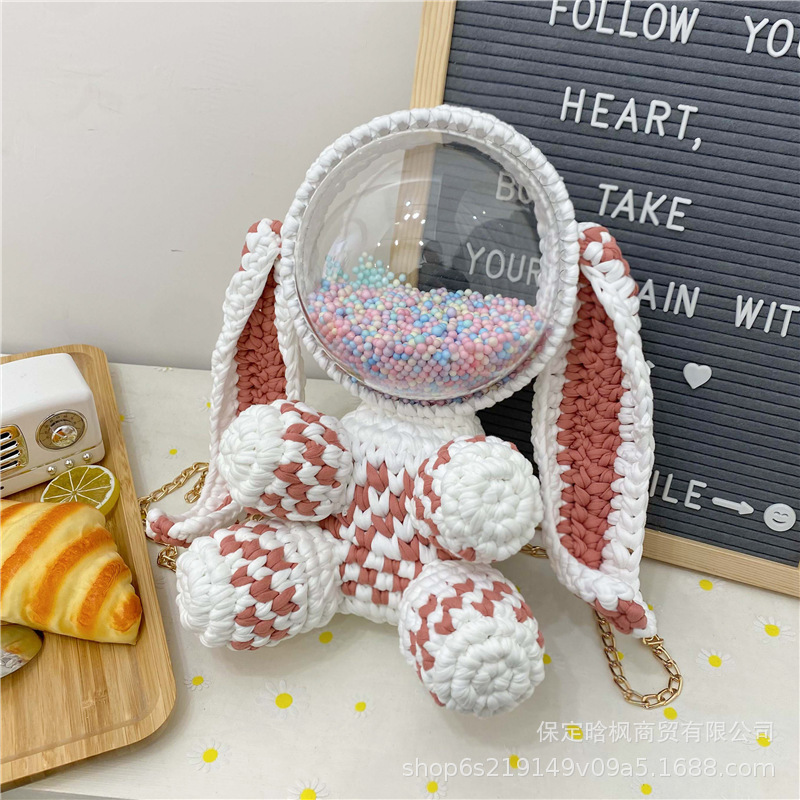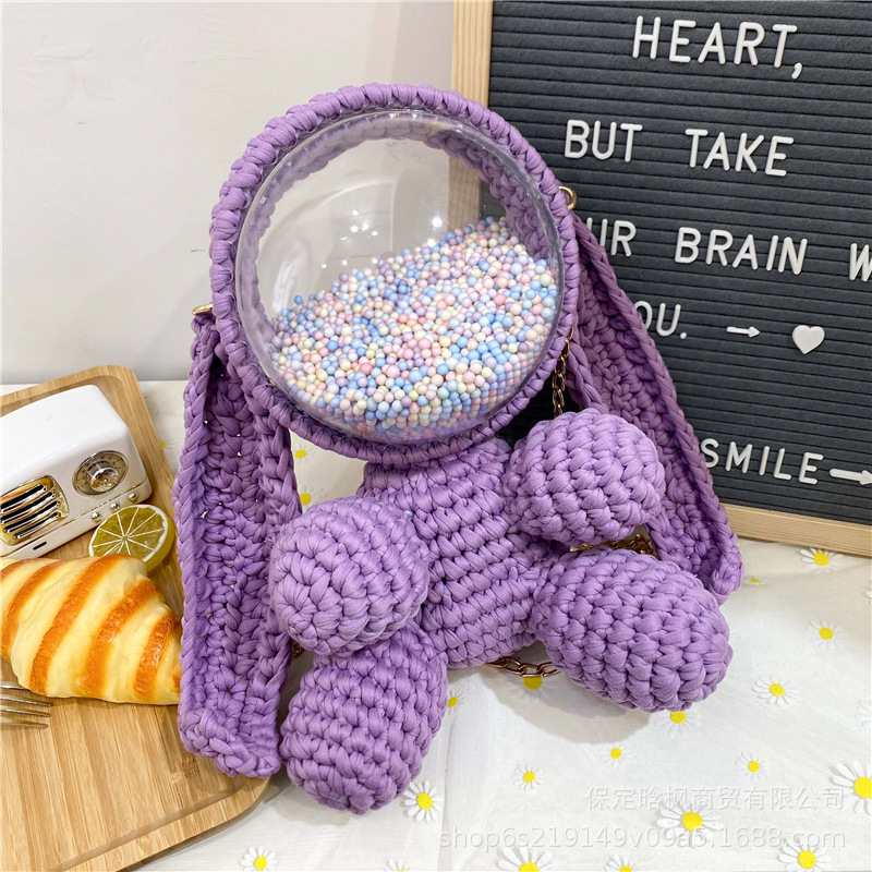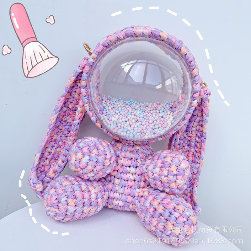 수제 짠 가방 토끼 DIY 소재 가방 크로 셰 뜨개질 천 스트랩 라인 자체 제작 어깨 어깨 크로스 바디 백 여성 선물스토어 가기