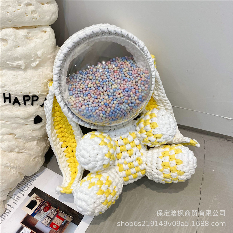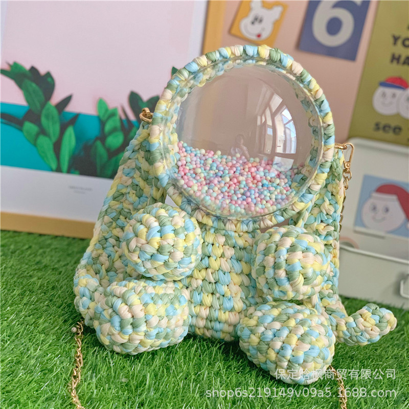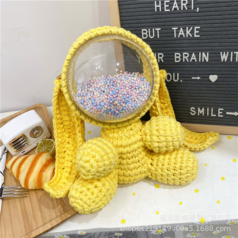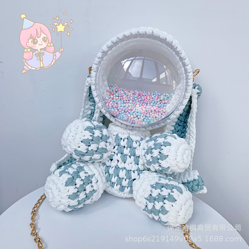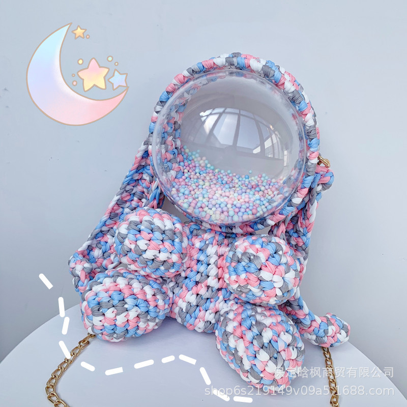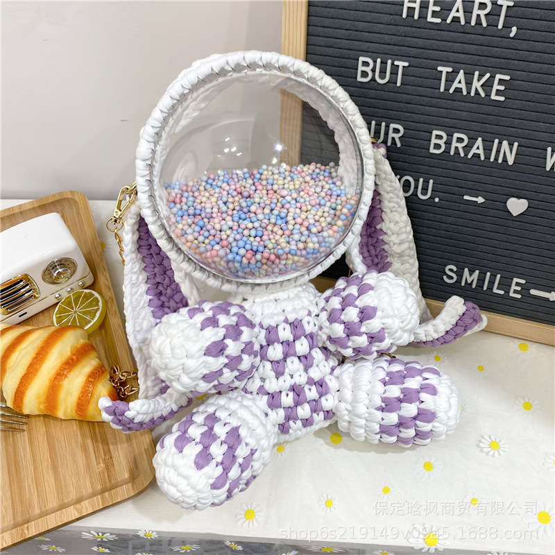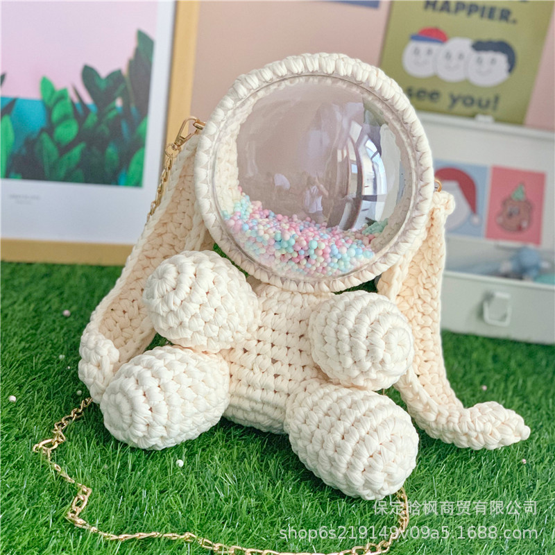 수제 짠 가방 토끼 DIY 소재 가방 크로 셰 뜨개질 천 스트랩 라인 자체 제작 어깨 어깨 크로스 바디 백 여성 선물스토어 가기