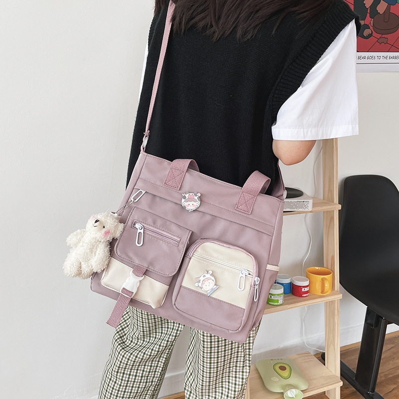 한국식 얼짱 아카데미 스타일 빈티지 모리 예술적 만능 소녀 학생 컬러 대용량 숄더백