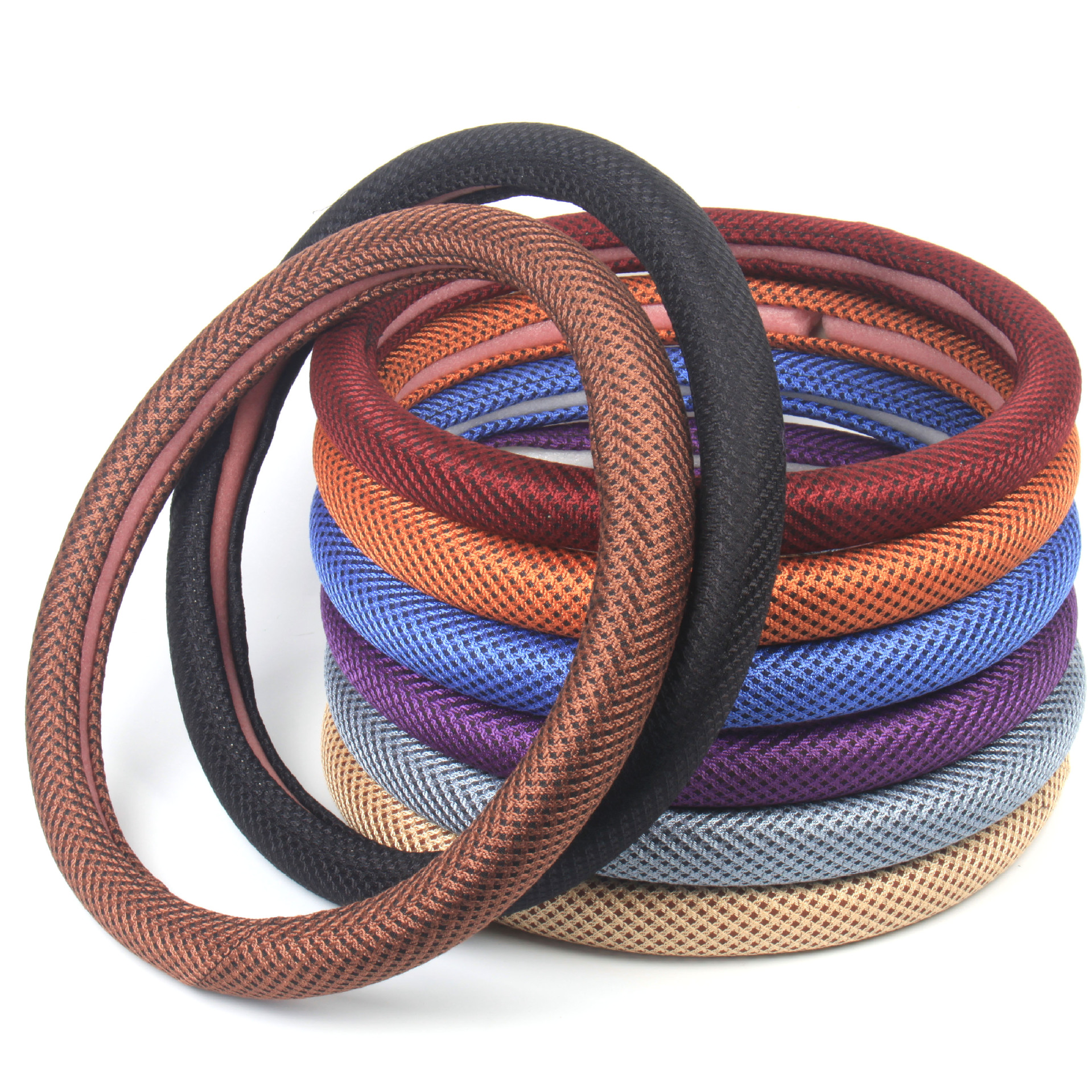자동차 핸들 커버 사계절 핸들 커버 여름 사용 가능 미끄럼 방지 스티어링 커버 멀티 컬러 아이스 실크 스티어링 휠 커버 도매스토어 가기