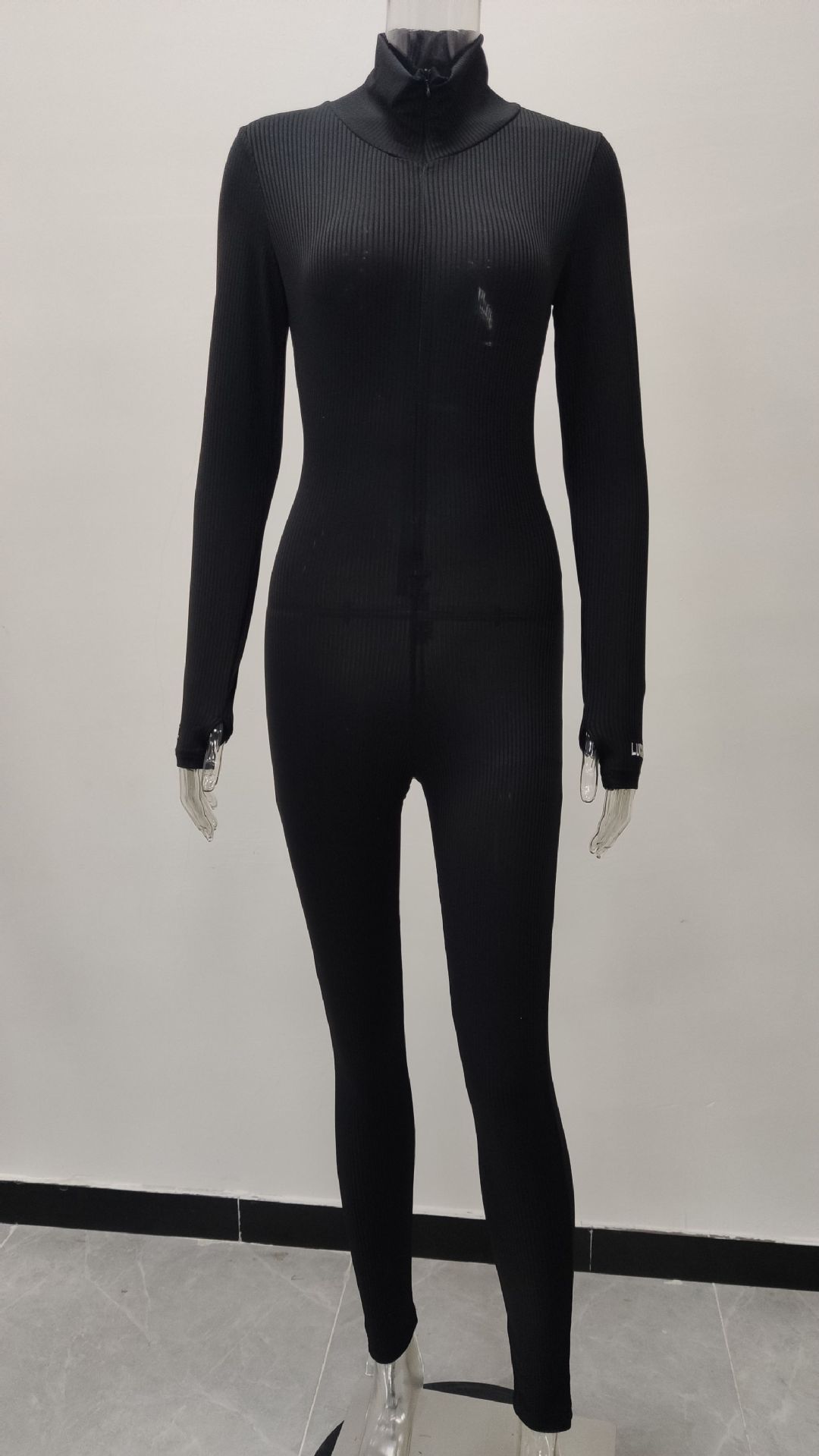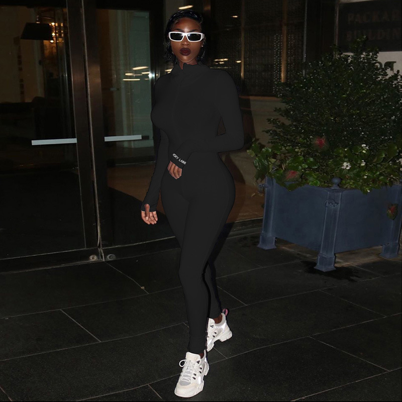 2026년 유럽과 미국에서 인기 있는 아마존 여성복 지퍼형 신축성 하이넥 자수 슬림핏 피트니스 점프수트 요가스토어 가기
