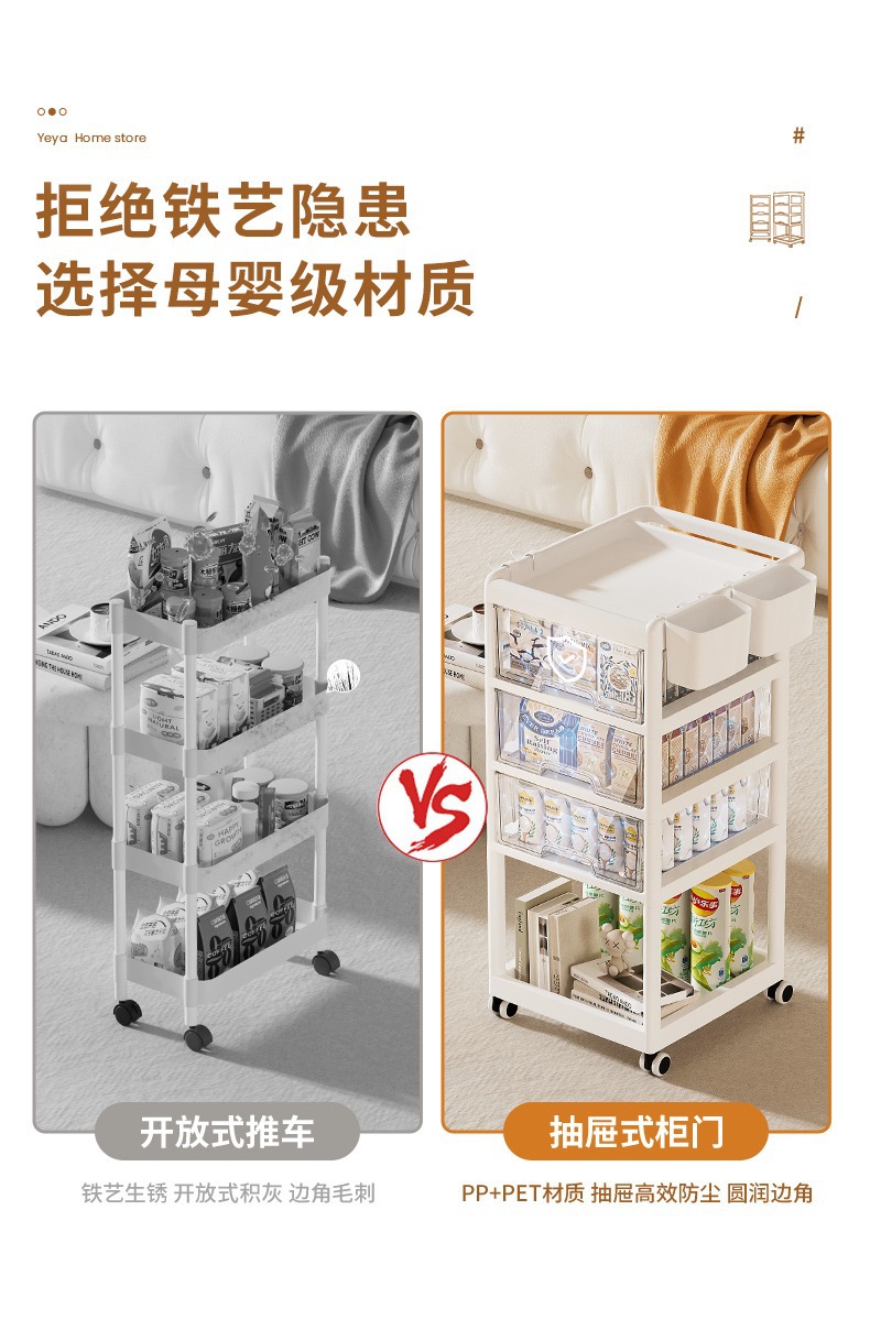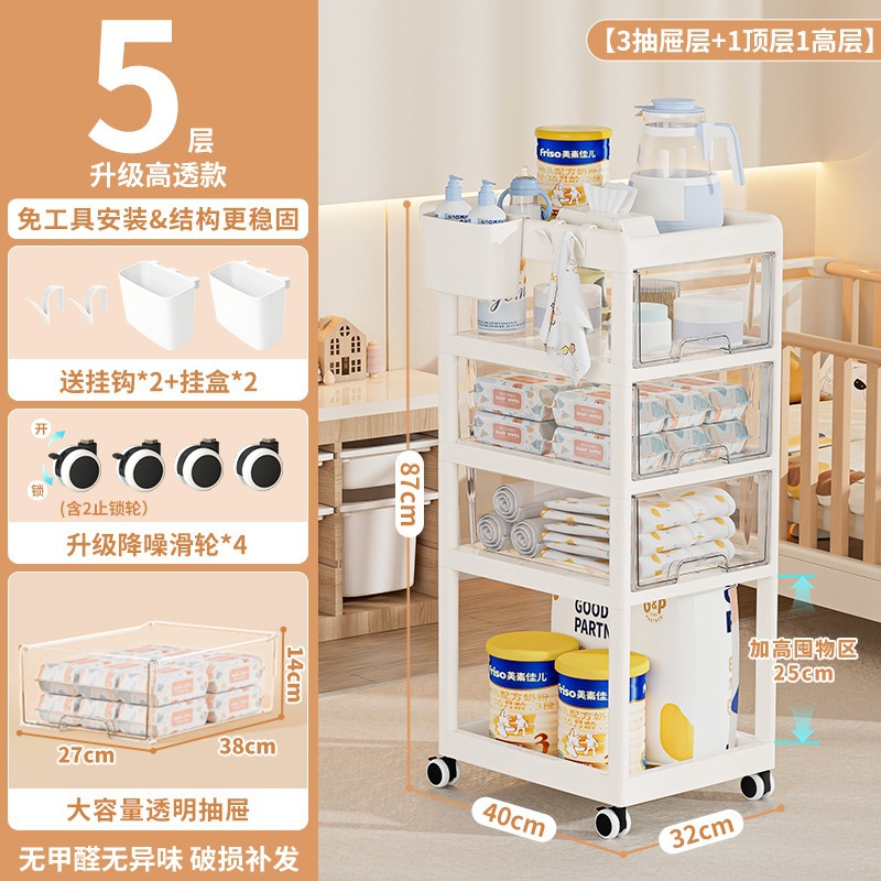 예야 플로어 스탠딩 수납 선반 아기용 다층 서랍 이동식 간식 보관 선반 무타공 간편 카트