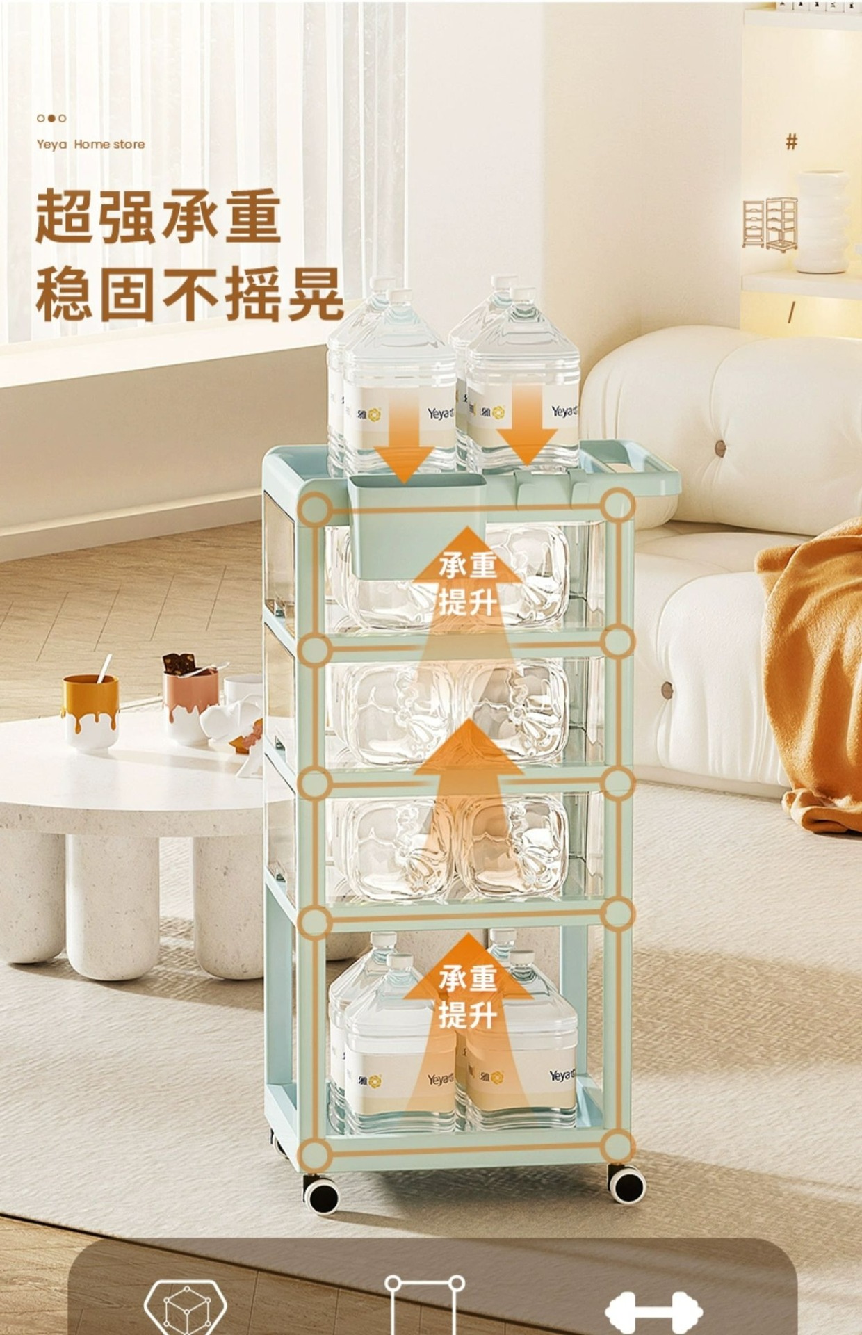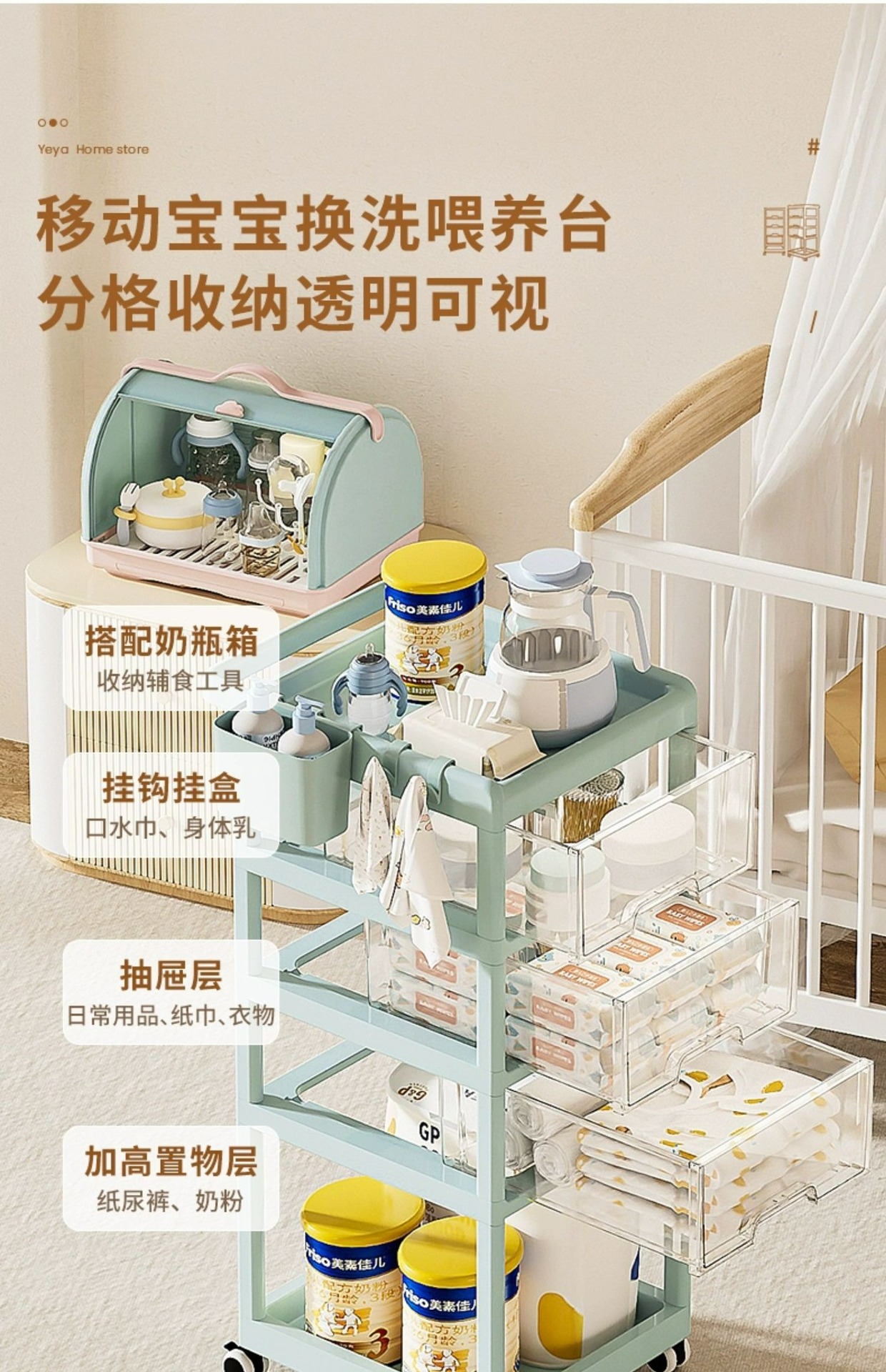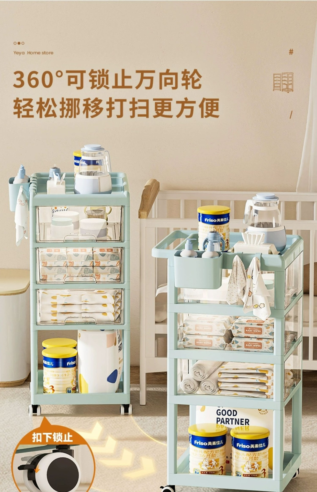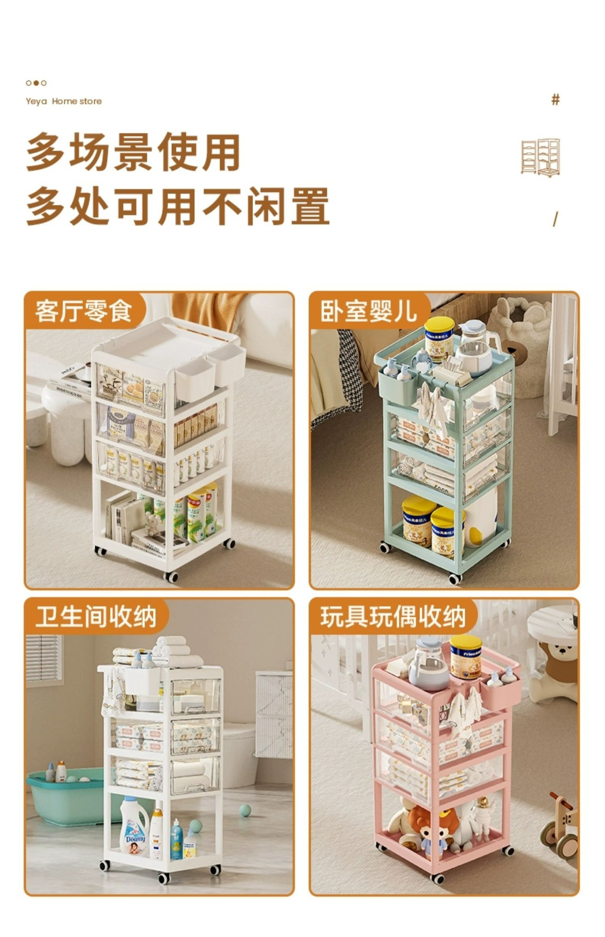 예야 플로어 스탠딩 수납 선반 아기용 다층 서랍 이동식 간식 보관 선반 무타공 간편 카트스토어 가기