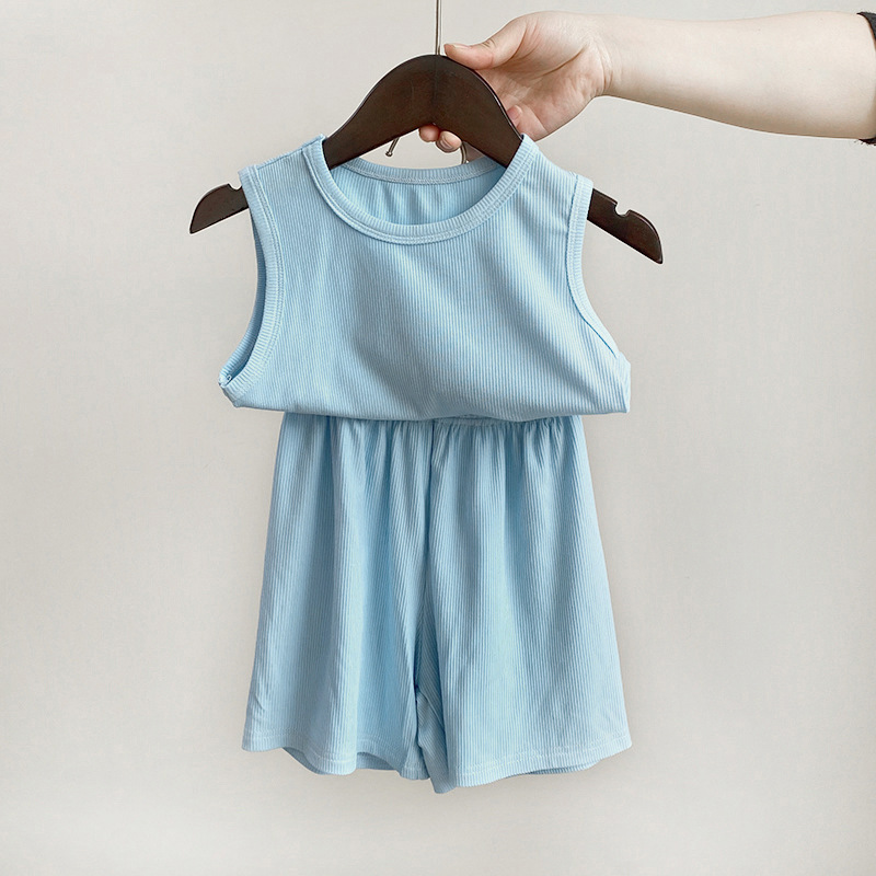 어린이 조끼 세트 마스크 2023 여름 새로운 여자 반바지 아기 조끼 한국 소년 세트 아동 의류스토어 가기