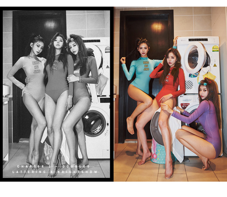 한국식 다이빙 세트 여성용 썬크림 해파리 세트 스노클링 서핑 긴팔 원피스 수영복 보수적인 온천 학생 수영복