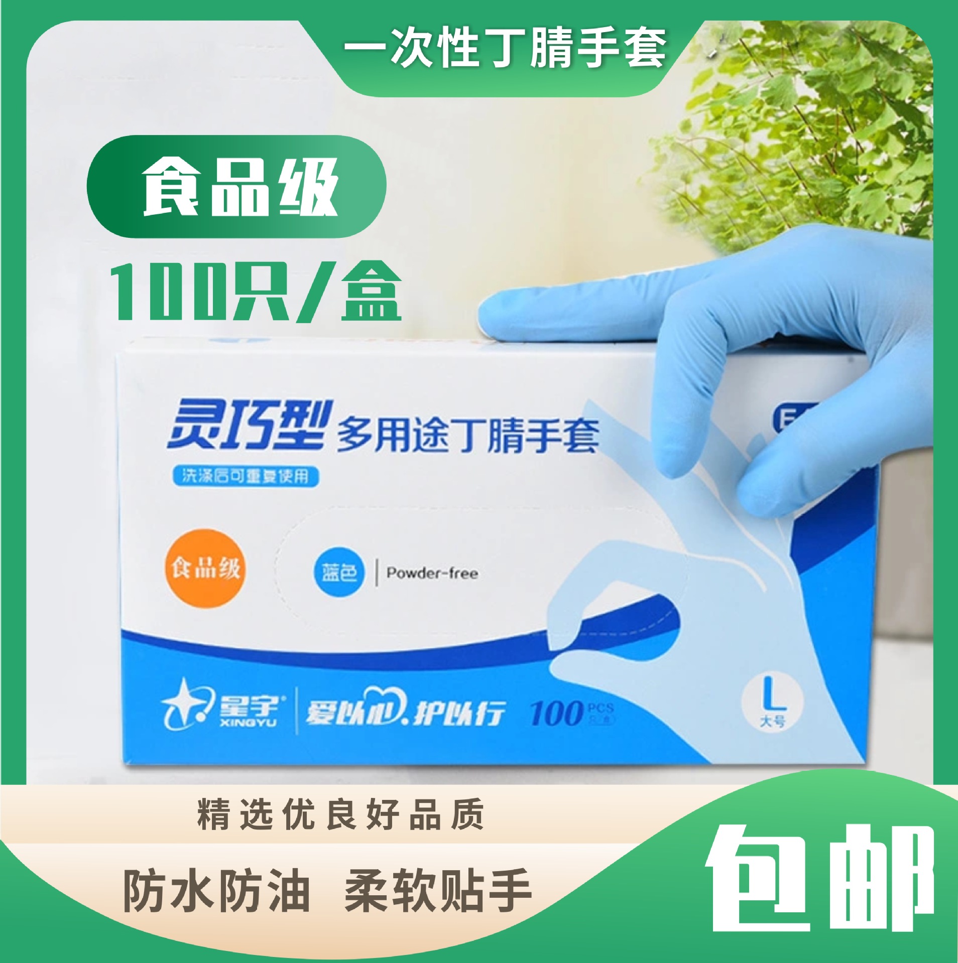 일회용 블루 퓨어 니트릴 장갑 고탄성 방수 분말 프리 청소 미용 식품 레스토랑 가정용 보호 장갑스토어 가기