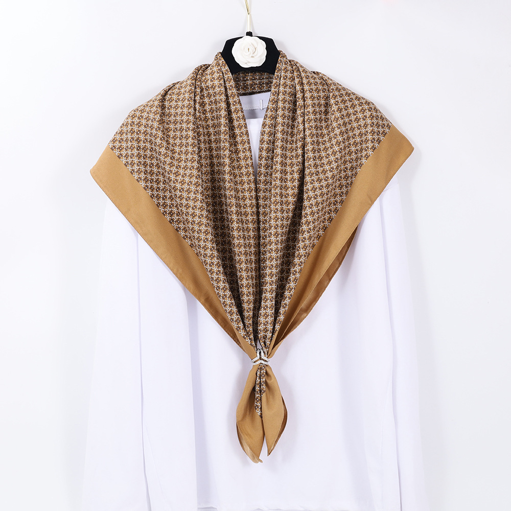 카키 더블 D 인쇄 실크 스카프 이른 봄 얇은 실크 스카프 90*90cm 대형 사각 스카프 통기성 능직 새틴 스카프