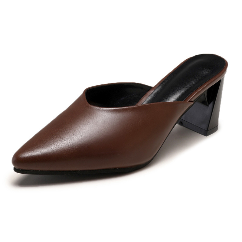 2024 봄 새 한국 스타일 뾰족한 발가락 청키 힐 여성 반 슬리퍼 유행 피팅 룸 슬립-게으른 신발 여성용 샌들 트렌디스토어 가기