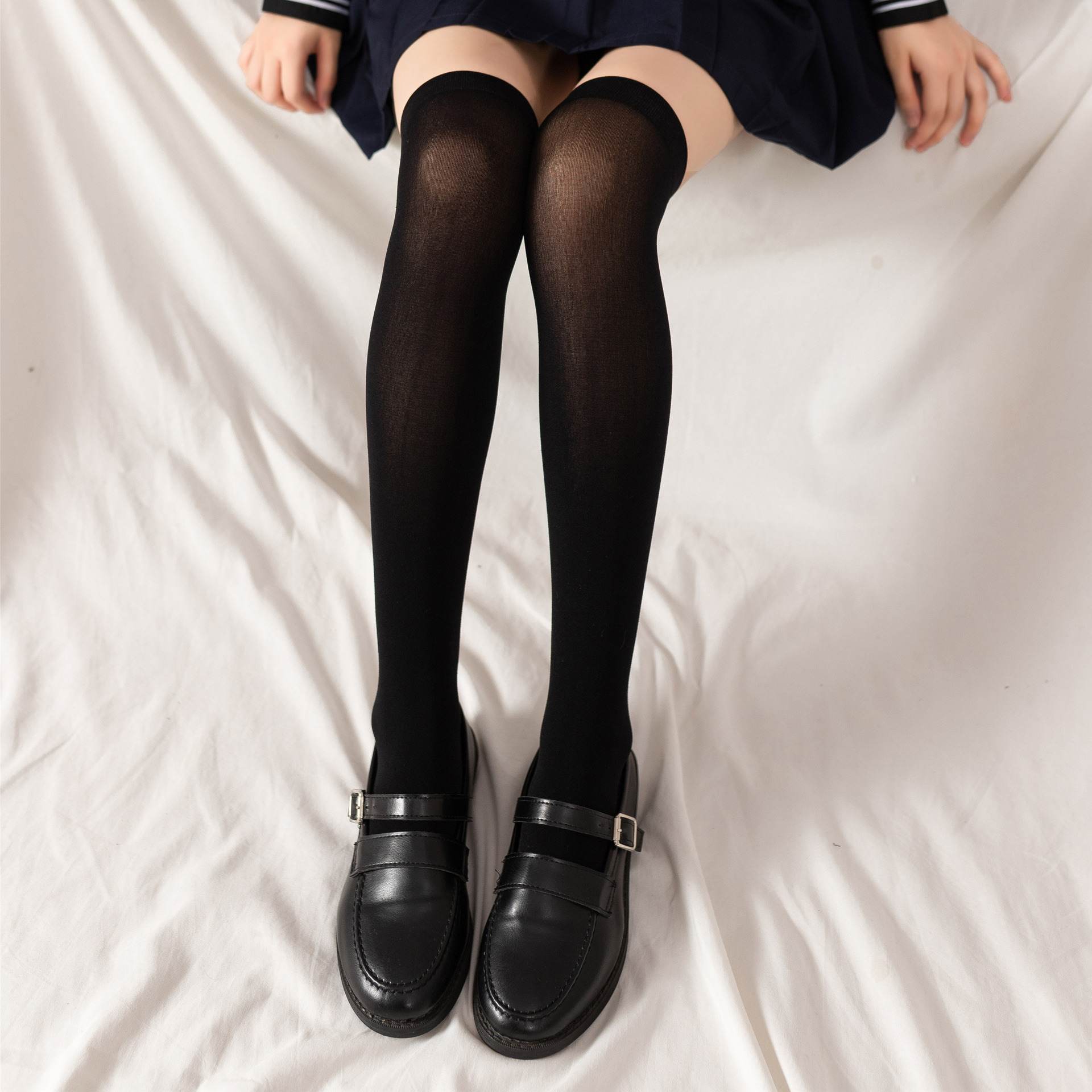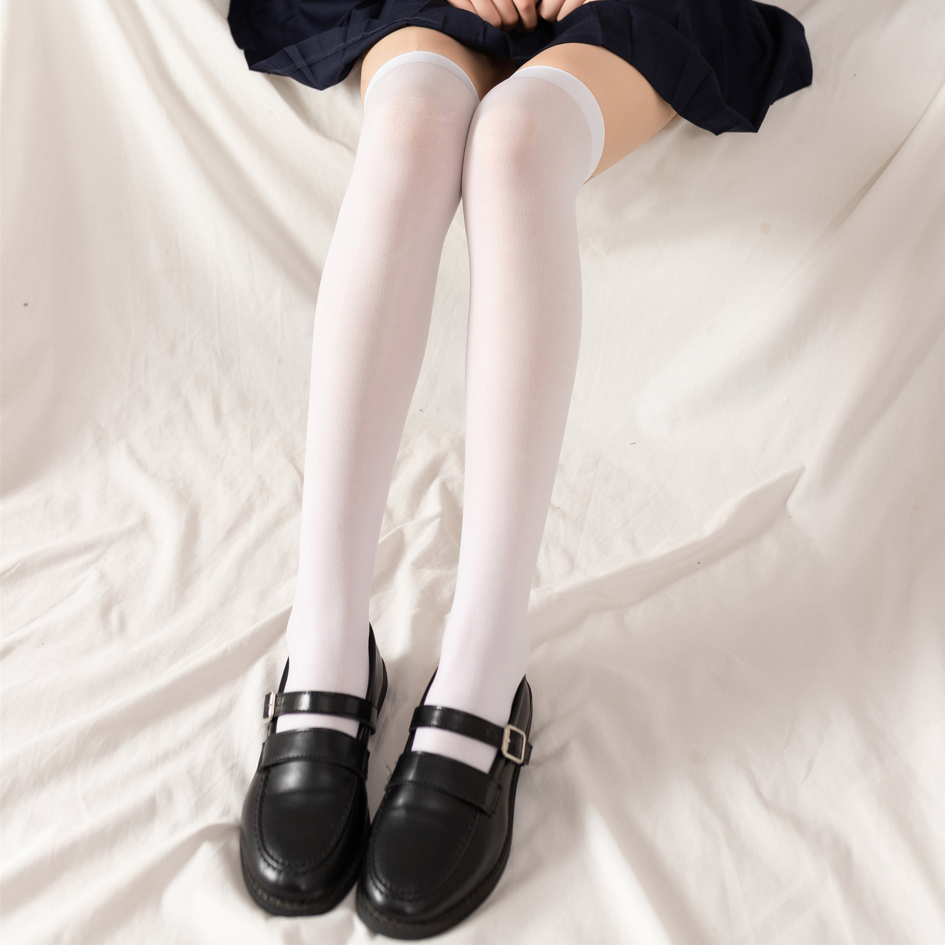 Jk 유니폼 양말 여성용 여름 얇은 벨벳 커프 양말 일본 대학 스타일 간단한 무릎 위 실크 양말스토어 가기