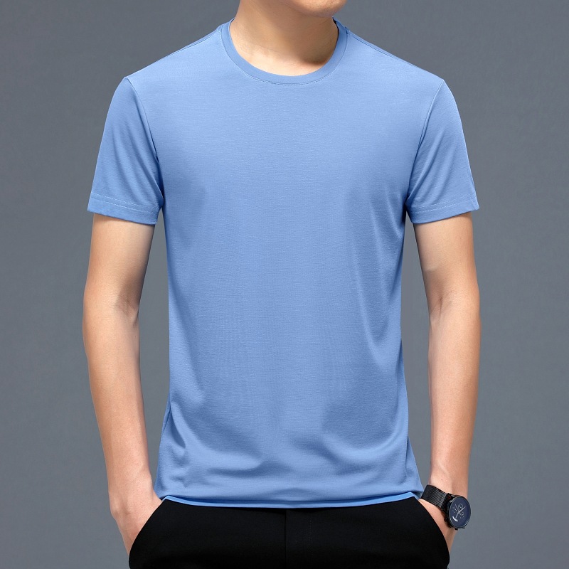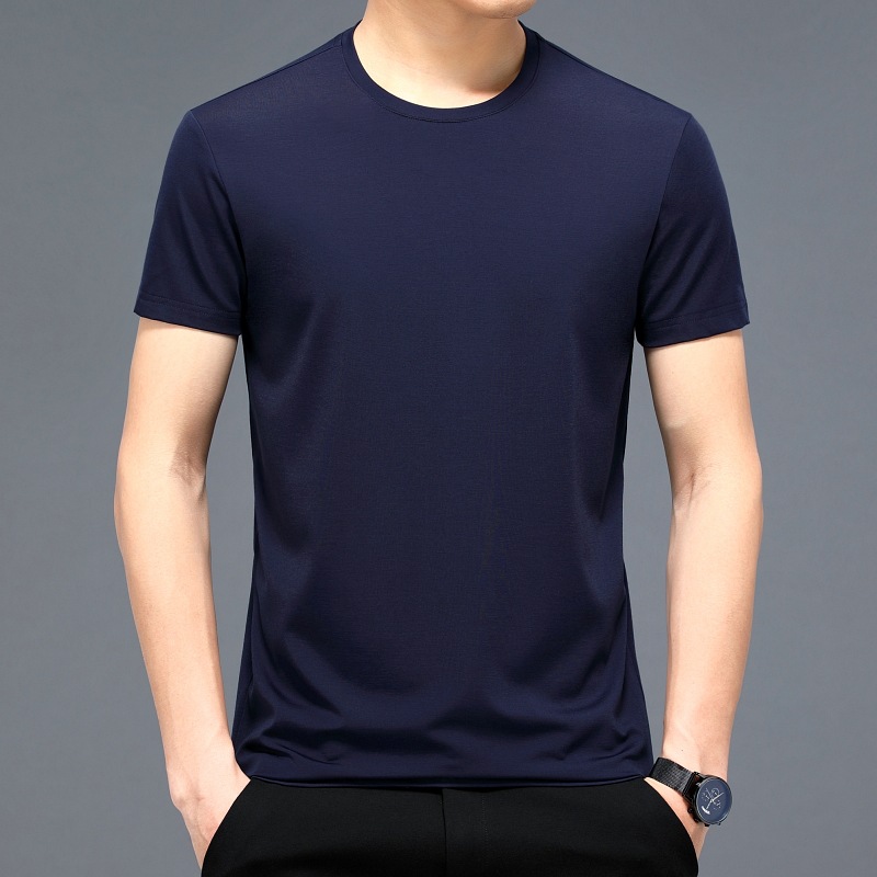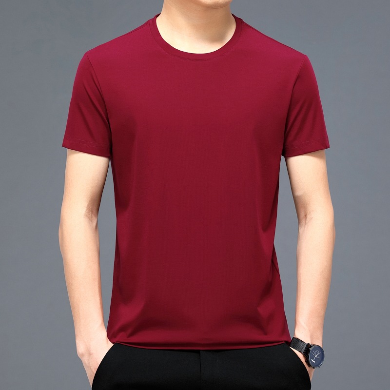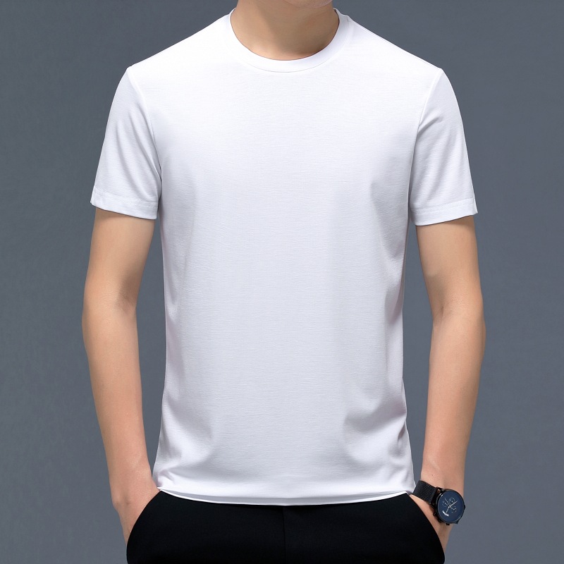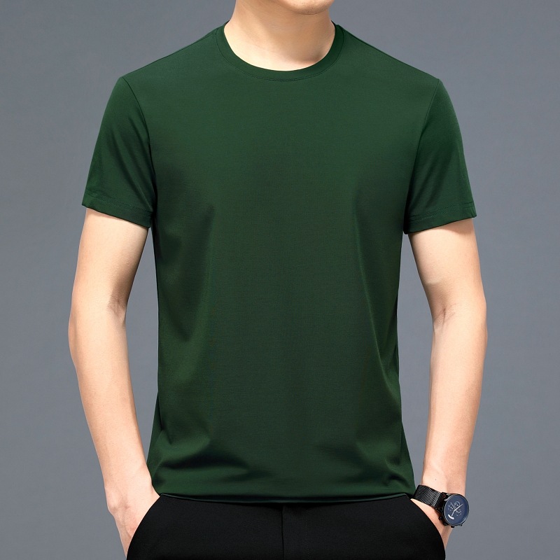 2023 여름 순면 반팔 티셔츠 남성용 라운드 넥 젊은 남성용 솔리드 컬러 캐주얼 루즈한 티셔츠 고급 베이스 셔츠 트렌디