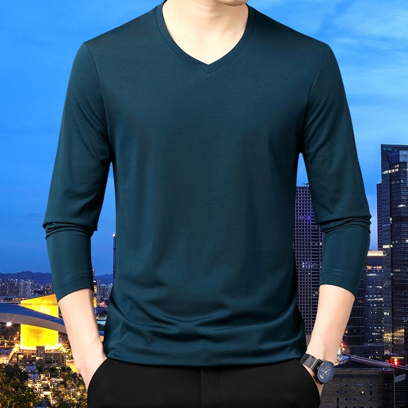 • 긴 소매 브이넥 다크 그린