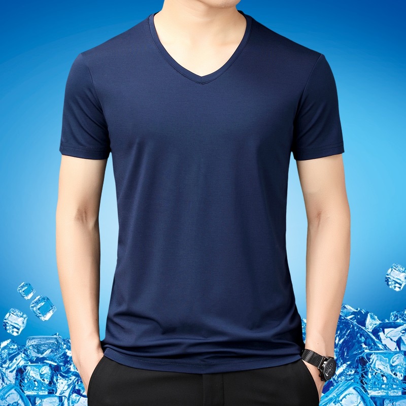 • 짧은 소매 브이넥 블루