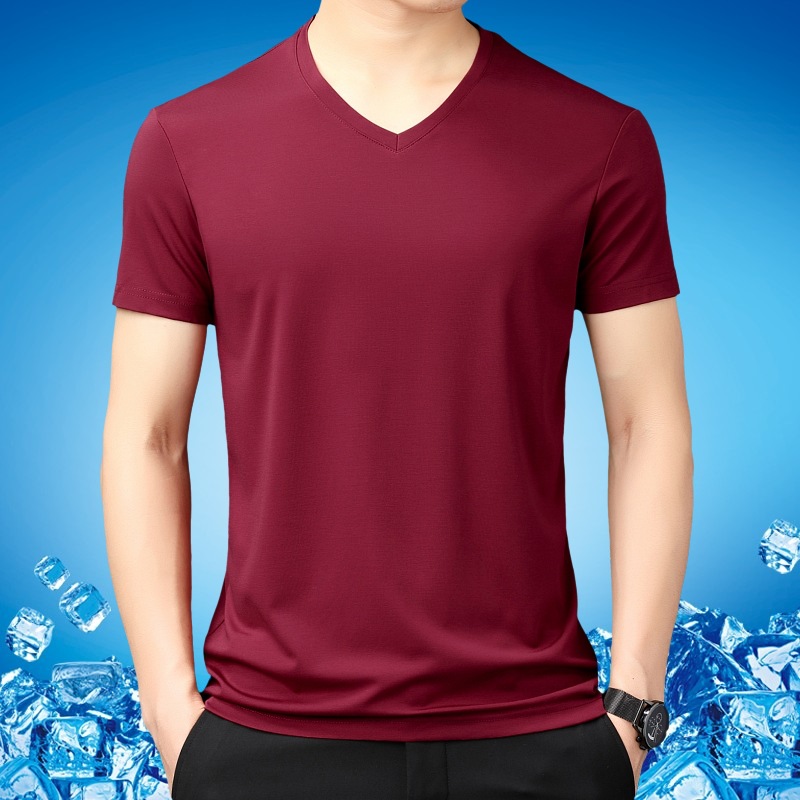 • 짧은 소매 V 넥 레드