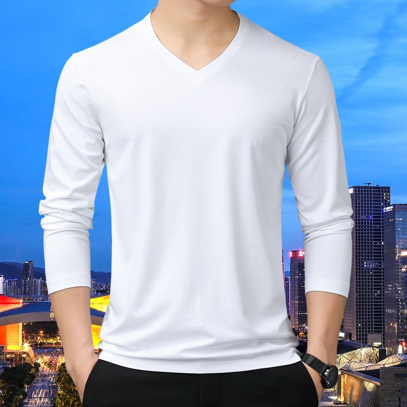 • 긴 소매 브이넥 화이트