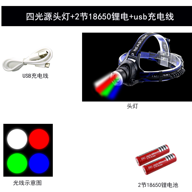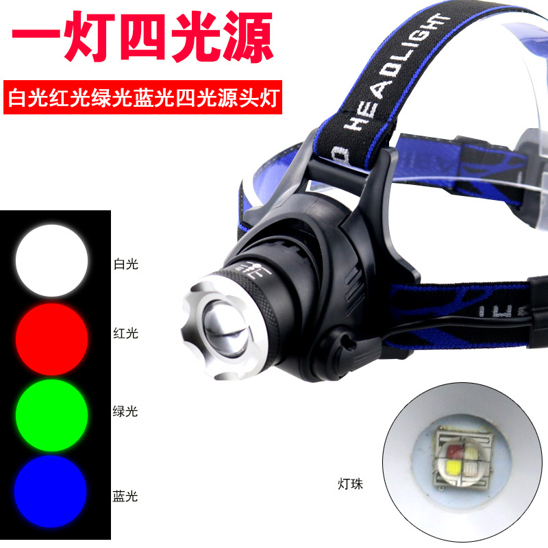 크로스 보더 그린 라이트 4 라이트 V9 화이트 레드 그린 블루 4 광원 헤드라이트 LED 강한 빛 USB 충전식 야외 양봉 야간 낚시 라이트스토어 가기