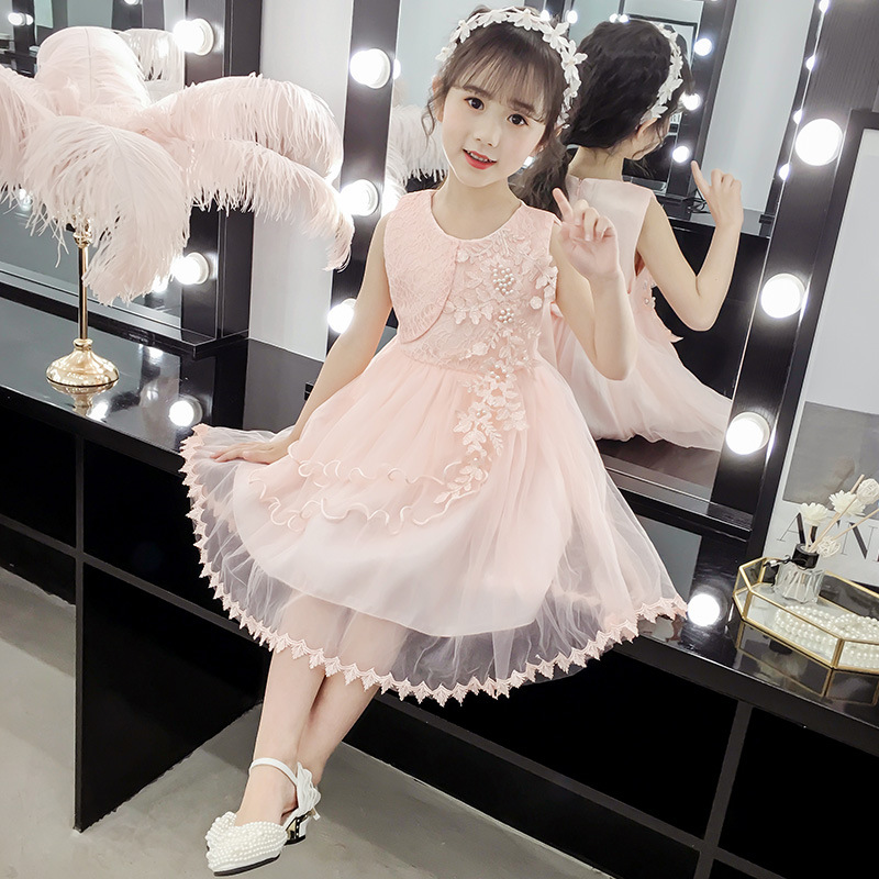 2023 새로운 소녀 여름 원피스 한국식 중대형 어린이 소녀 세련된 공주 원피스 더브테일 공연 원피스스토어 가기
