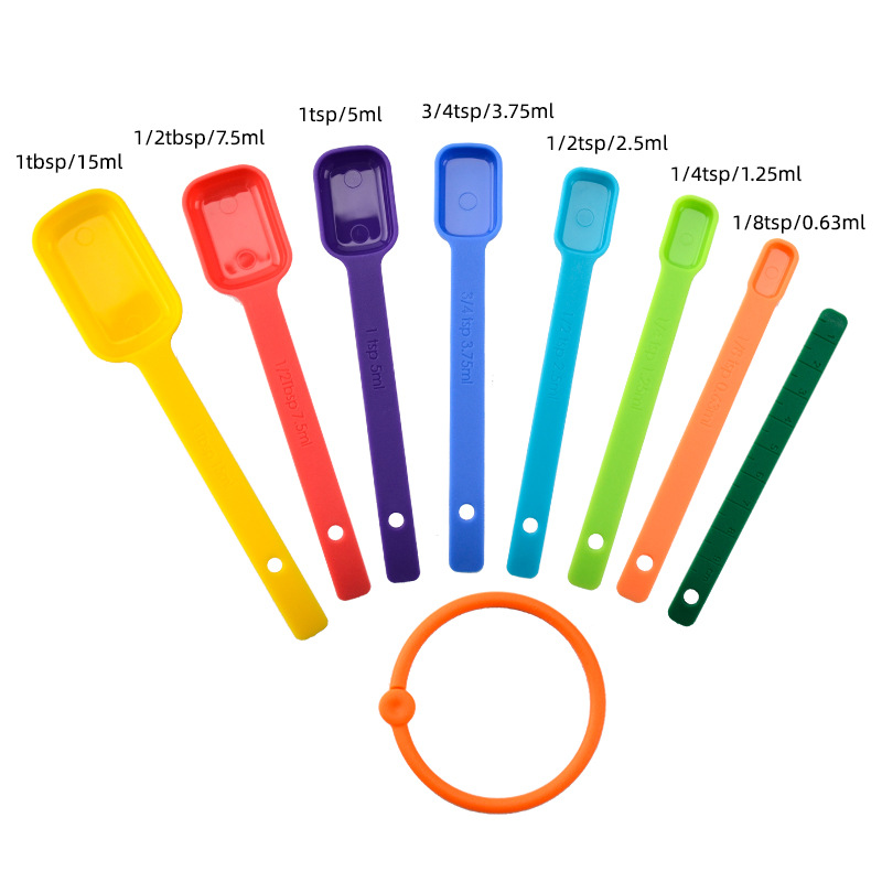 도매 플라스틱 측정 숟가락 측정 컵 창조적 인 베이킹 세트 주방 도구 무지개 색 15 조각 세트 측정 숟가락 세트
