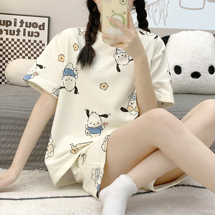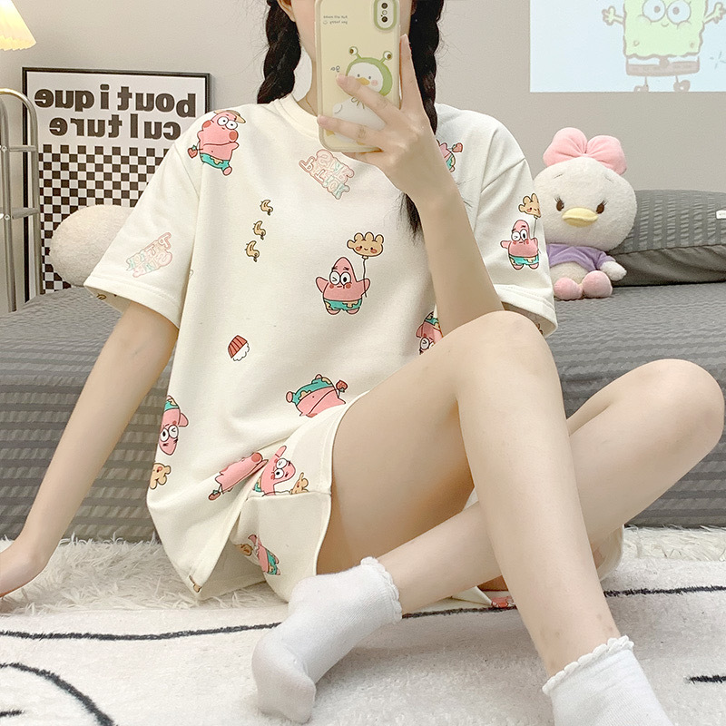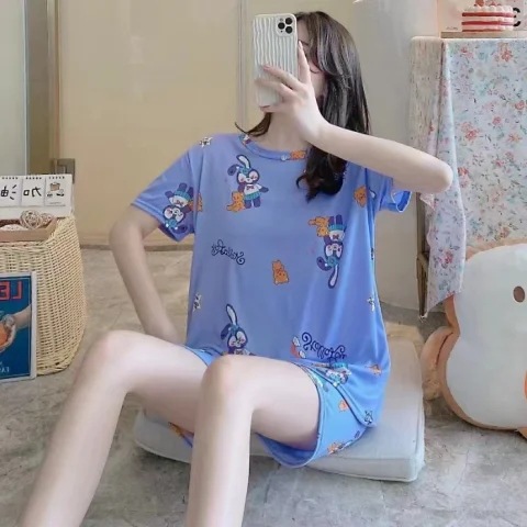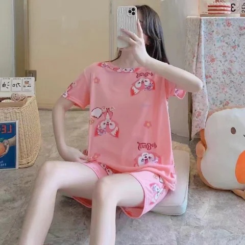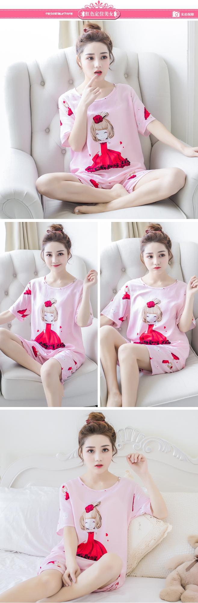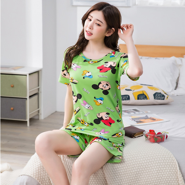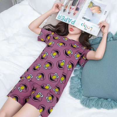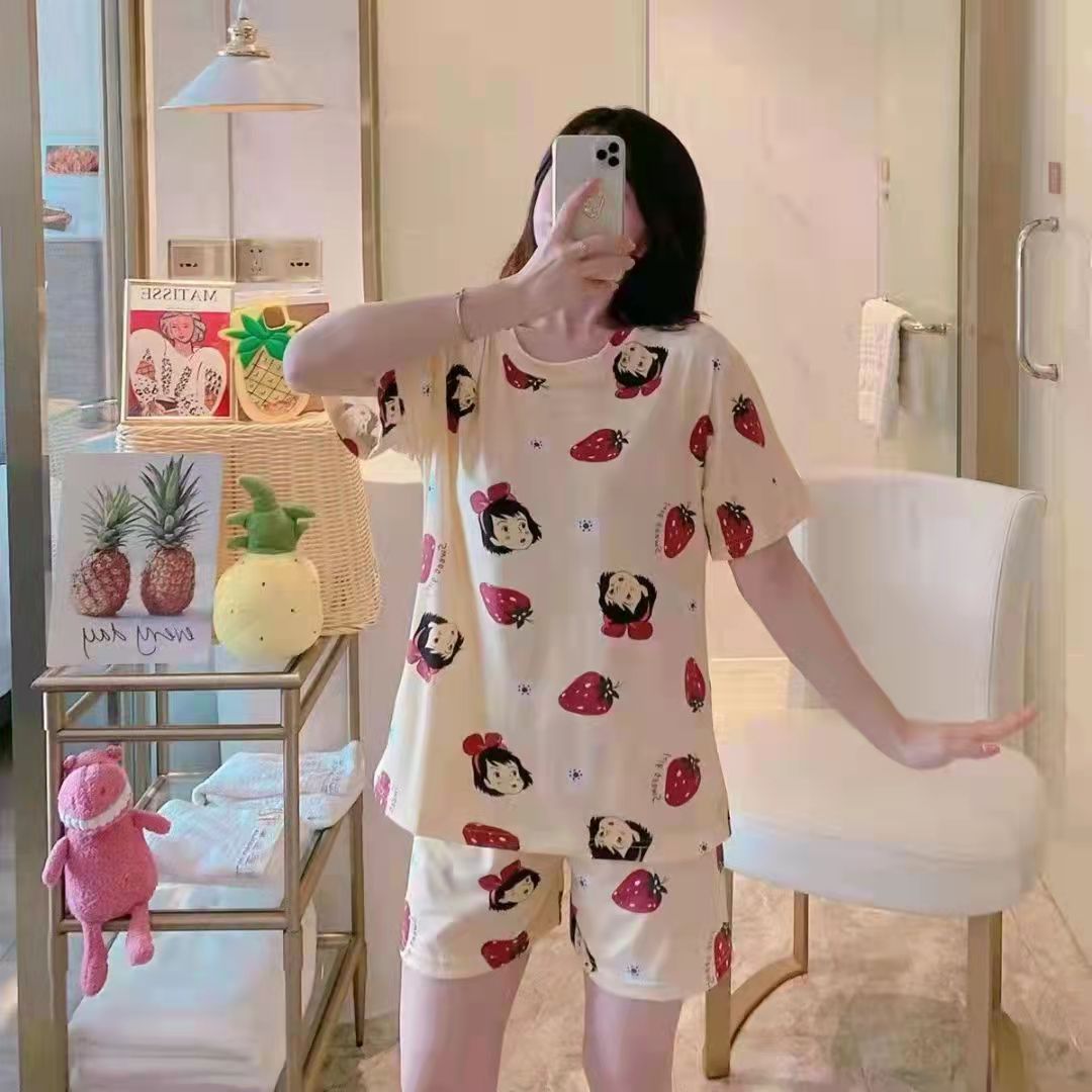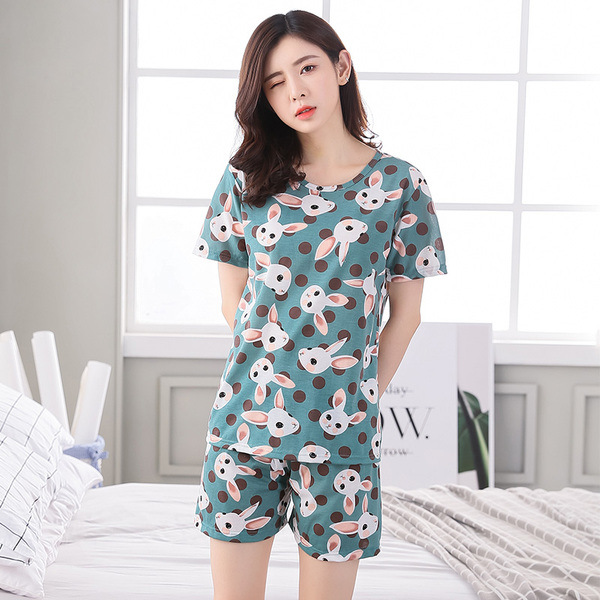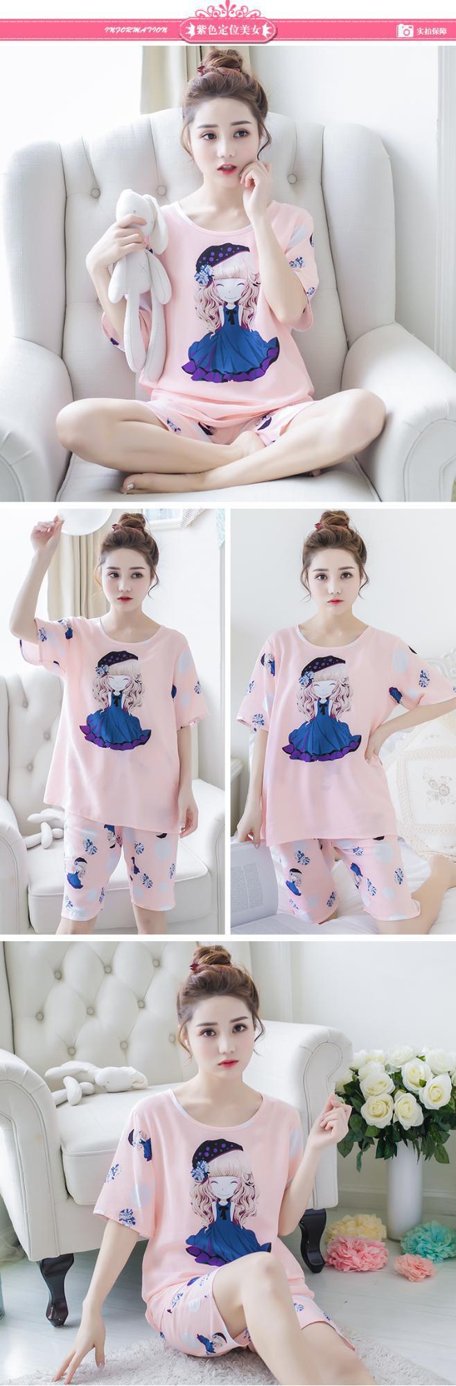 크로스 국경 대외 무역 여름 반팔 잠옷 여자의 귀여운 달콤한 만화 반팔 플러스 사이즈 여자의 가정 옷 세트스토어 가기