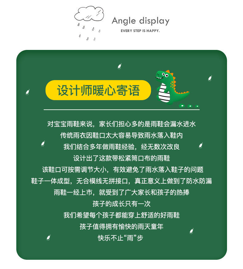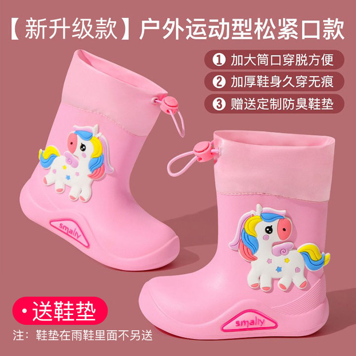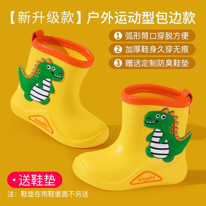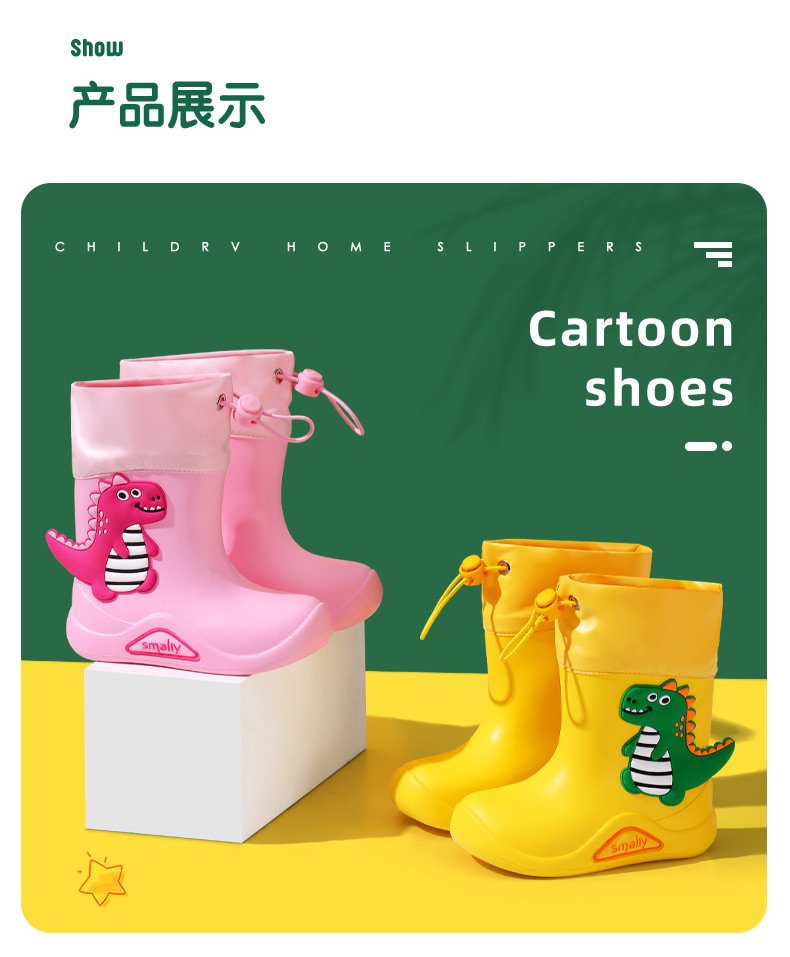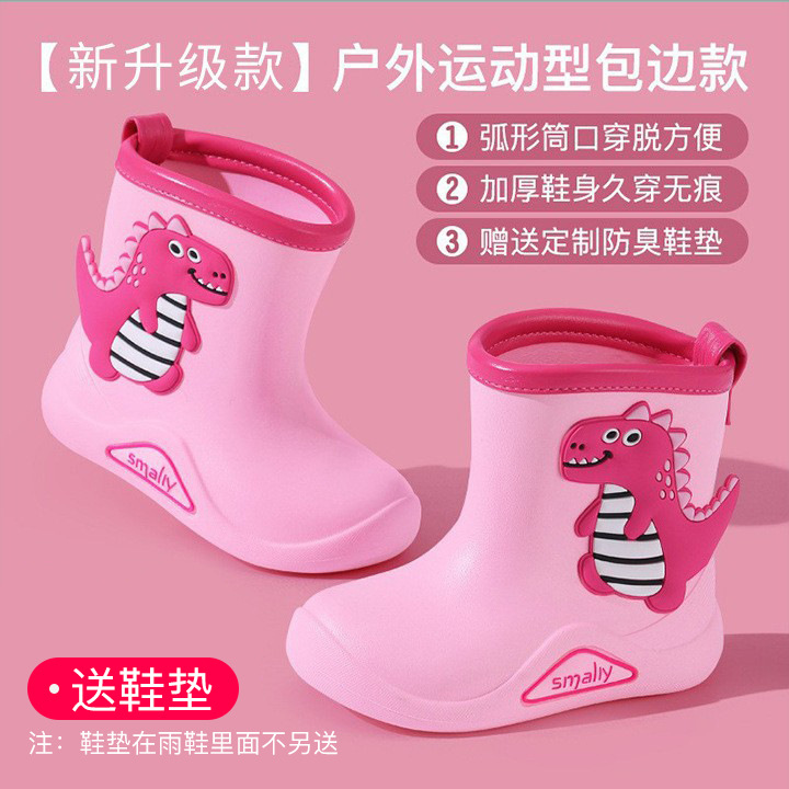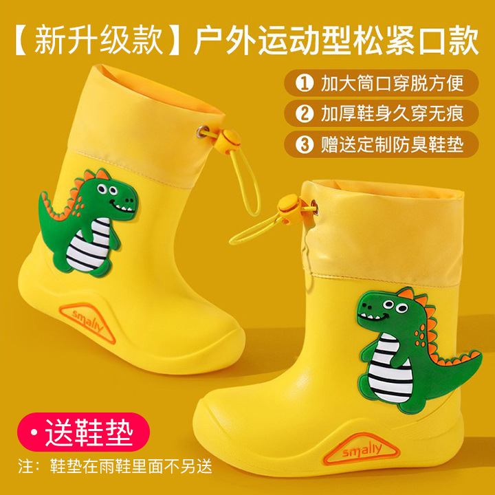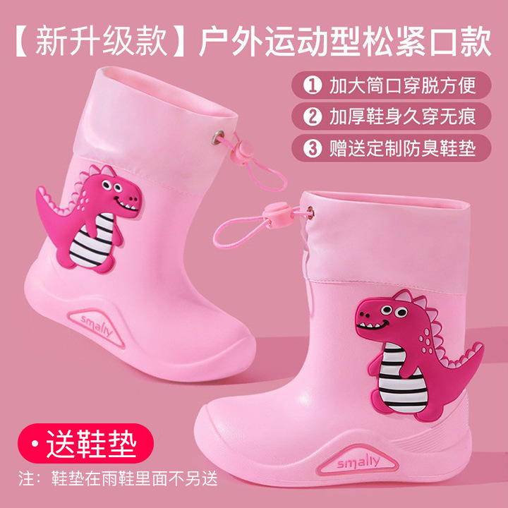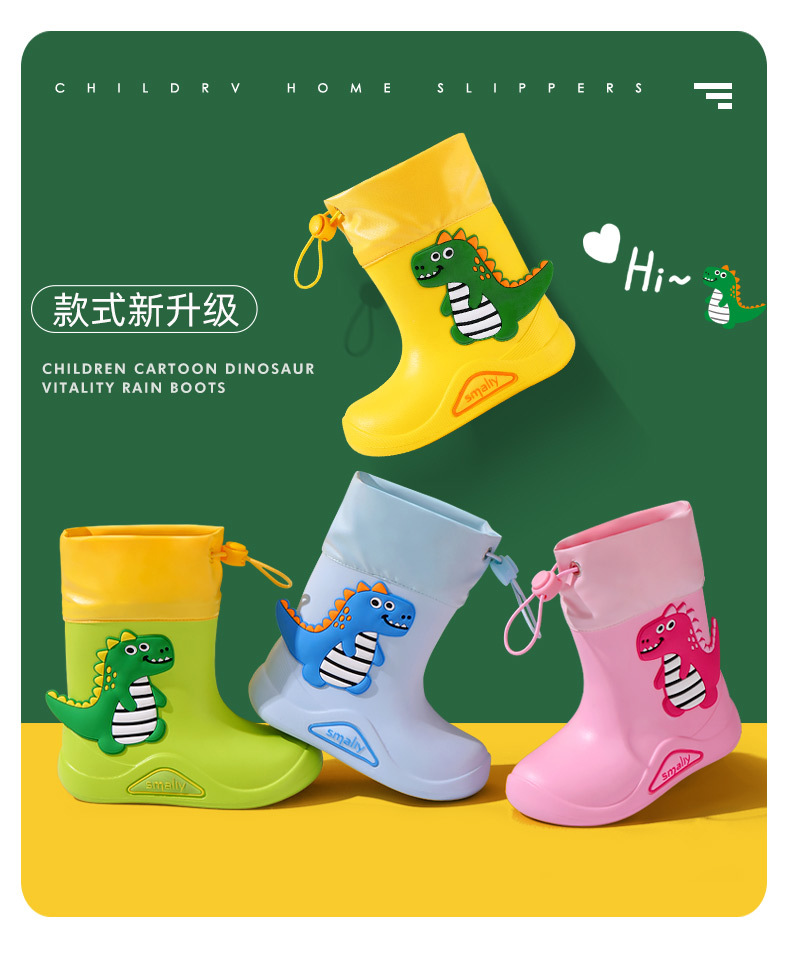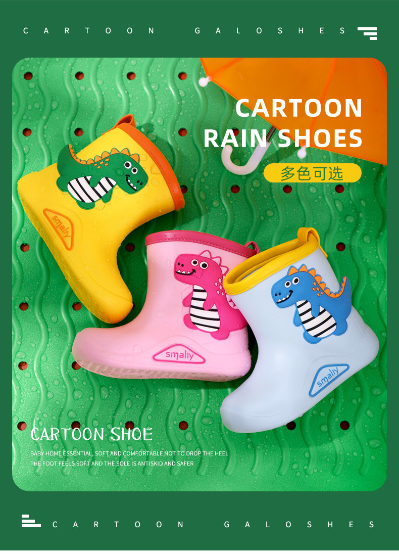 어린이 비 부츠 아기 두꺼운 부드러운 장화 어린이 방수 미끄럼 비 게이지 작은 공룡 다리 느슨한 물 신발스토어 가기