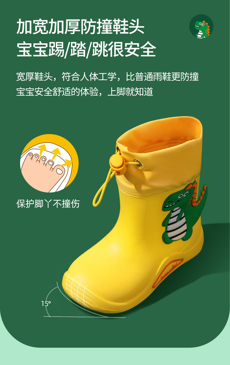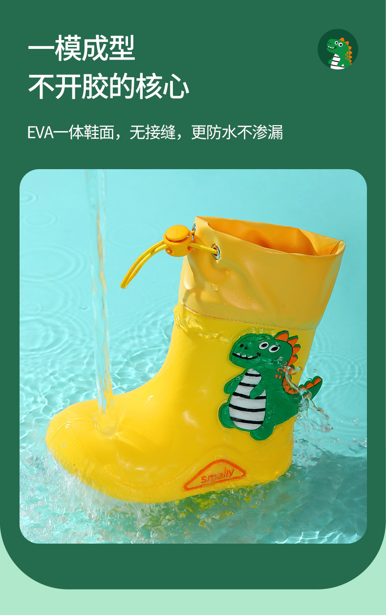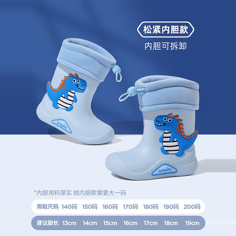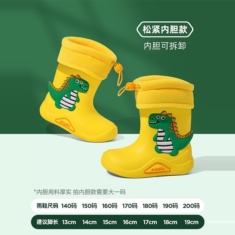 어린이 비 부츠 아기 두꺼운 부드러운 장화 어린이 방수 미끄럼 비 게이지 작은 공룡 다리 느슨한 물 신발