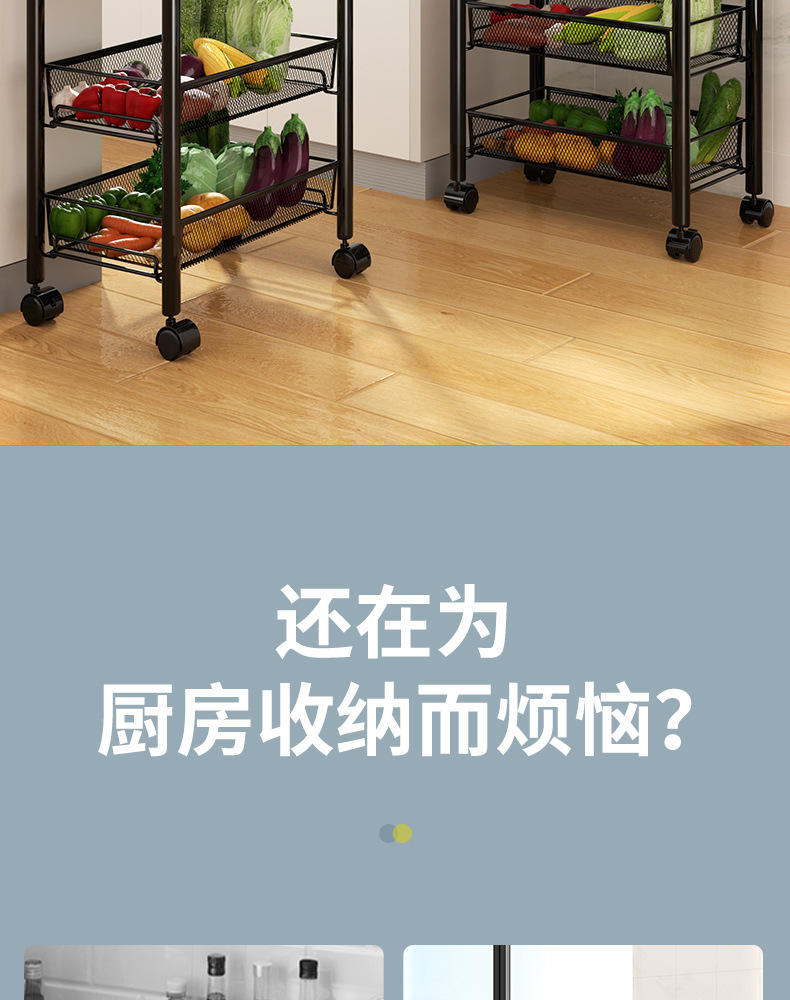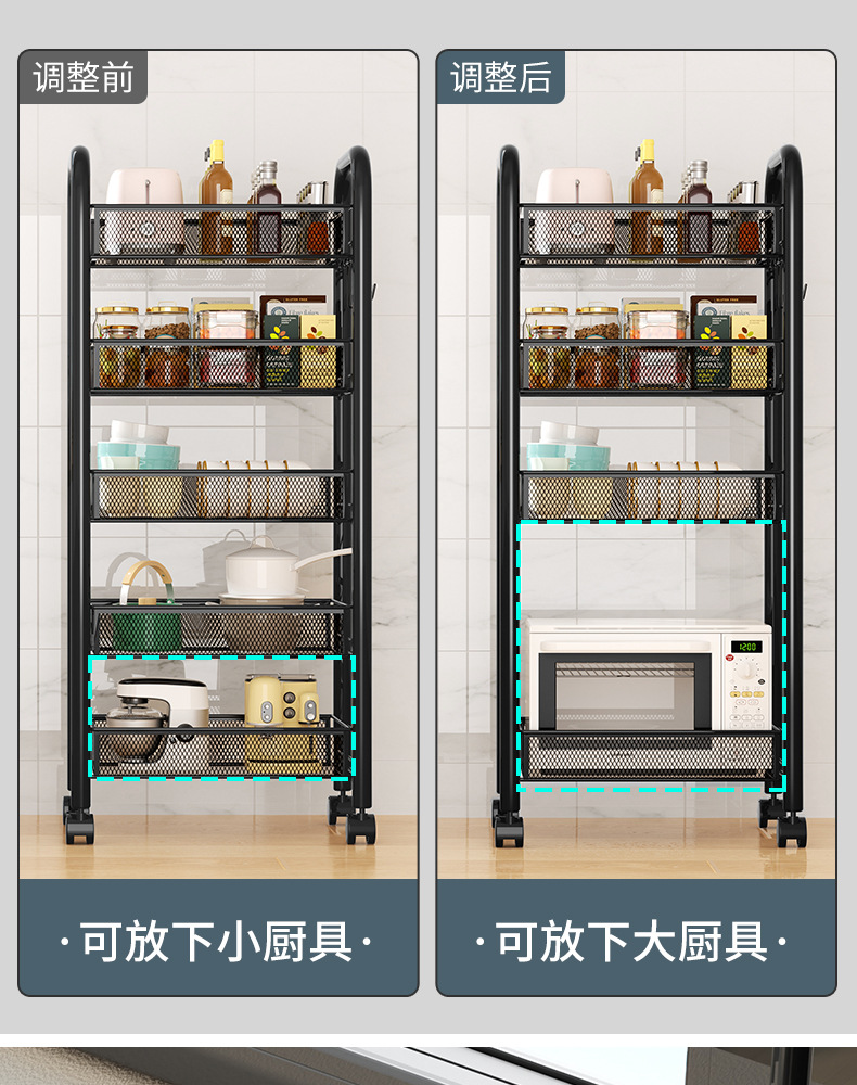 다기능 다층 이동식 수납 선반, 간식 및 장난감 보관용, 주방용 무타공 선반