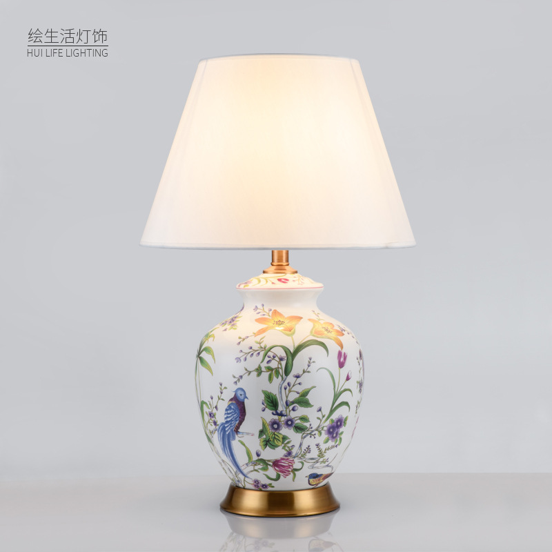 미국 꽃과 새 세라믹 테이블 램프 거실 침실 연구 침대 옆 램프 호텔 모델 룸 따뜻한 고급 테이블 램프