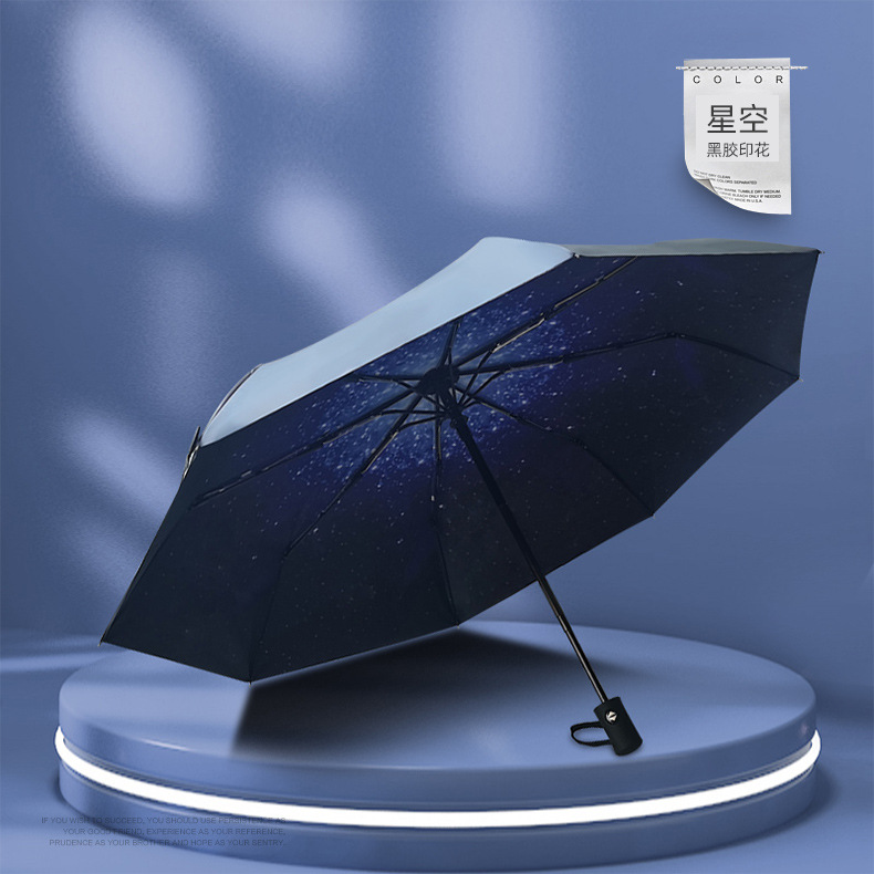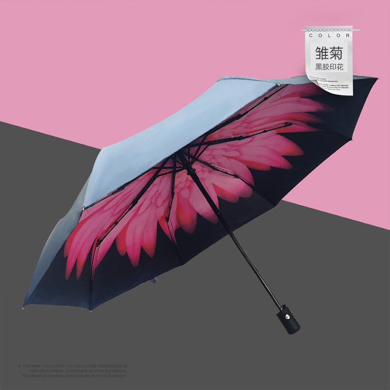 맞춤형 우산 우산 접는 자동 태양 우산 광고 블랙 고무 자외선 차단제 및 비 이중 목적 3 중 인쇄 로고