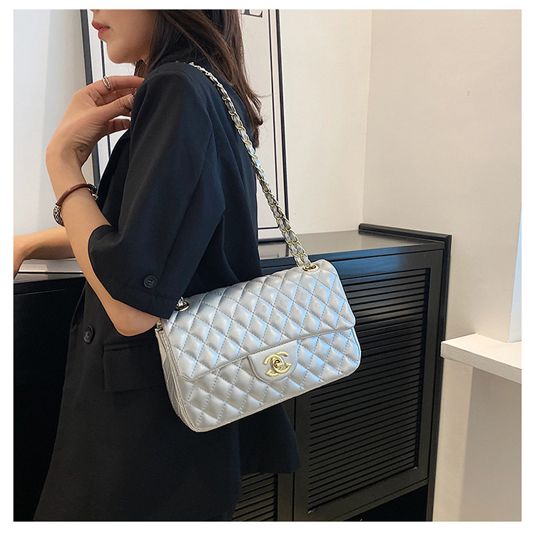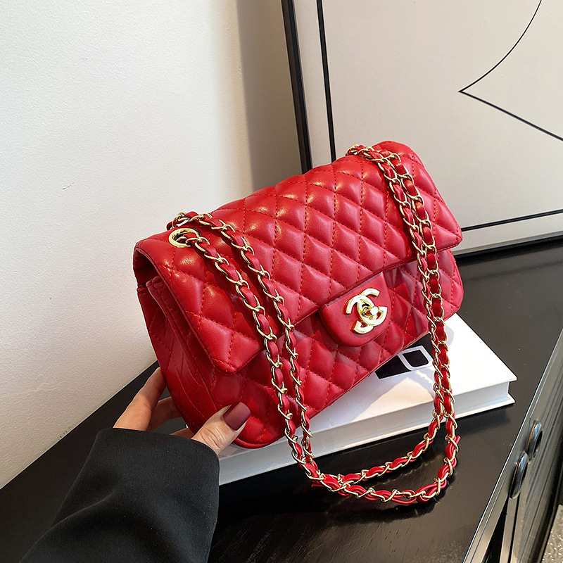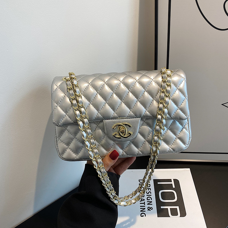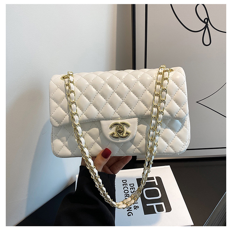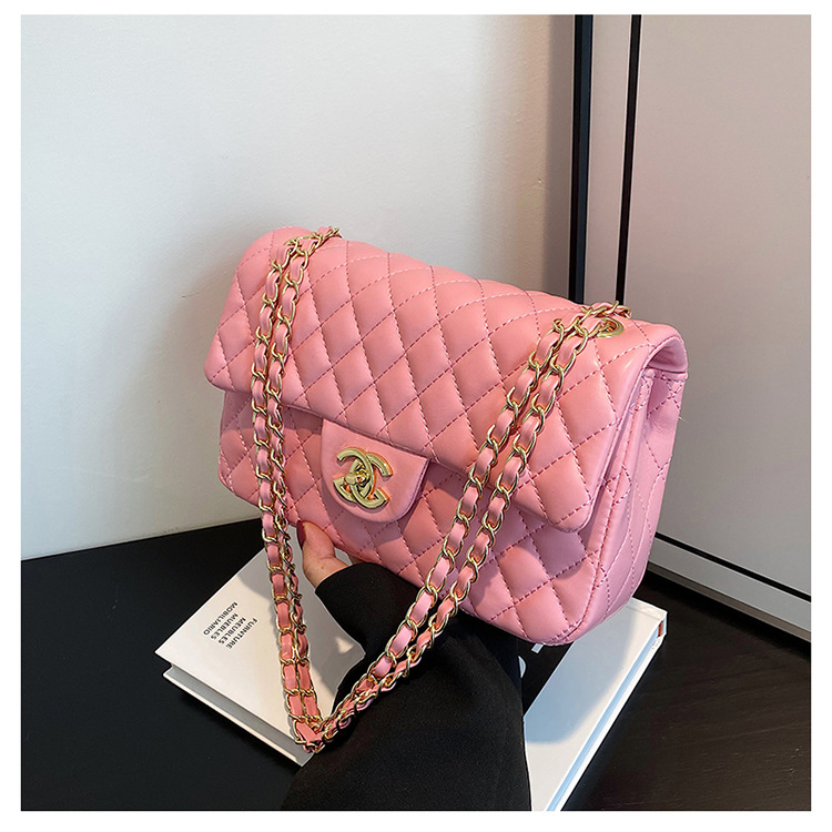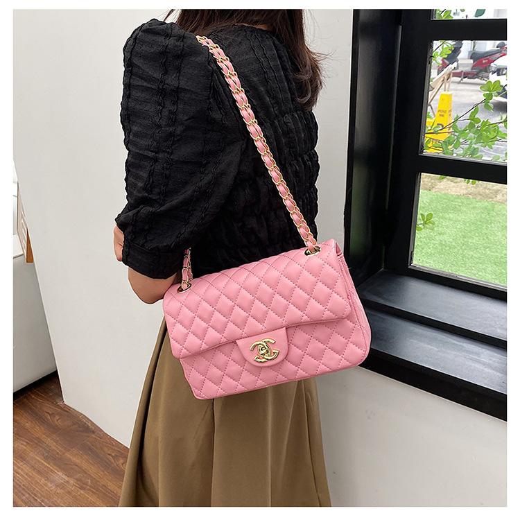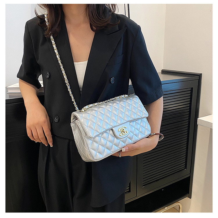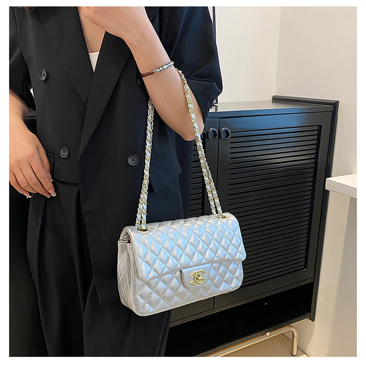 다이아몬드 패턴 여성용 체인 크로스백 2025 신상 잠금장치 플랩 디자인 심플하고 우아한 패셔너블한 유럽풍 스타일스토어 가기