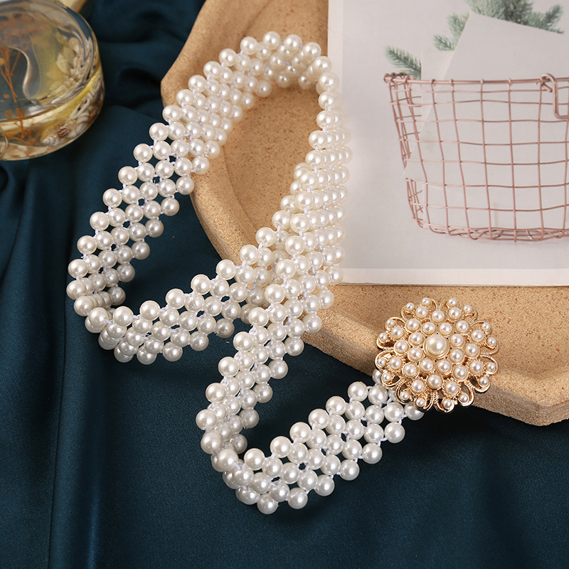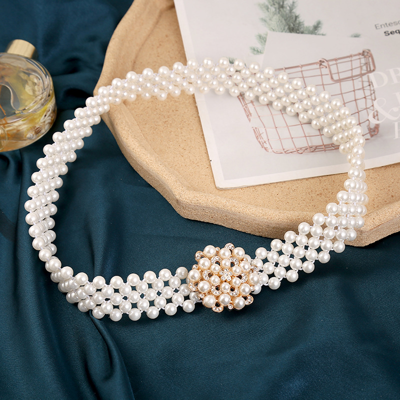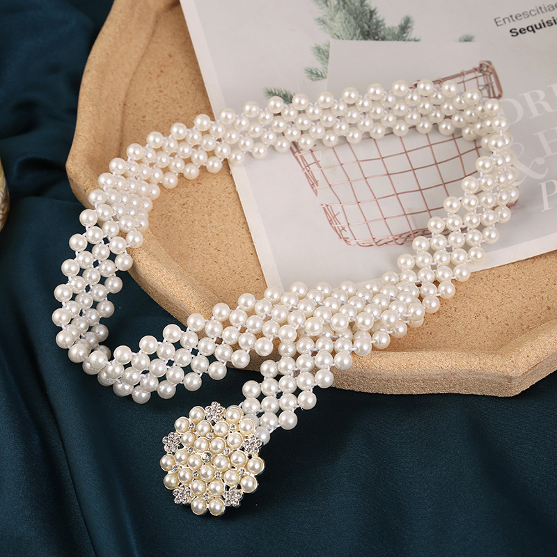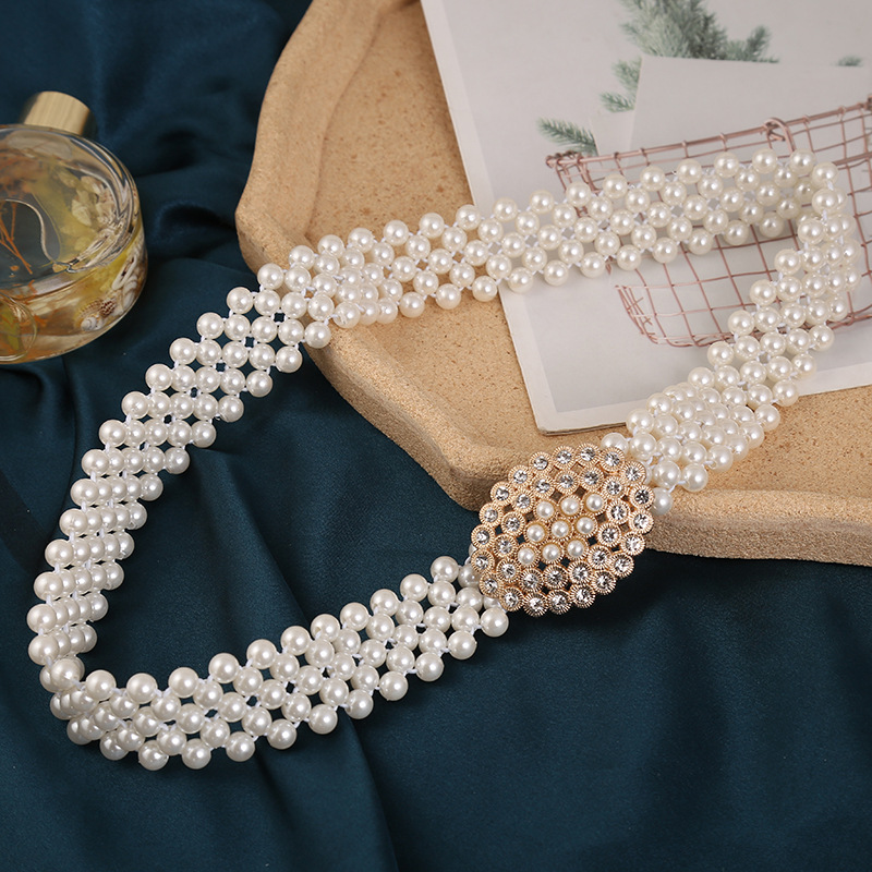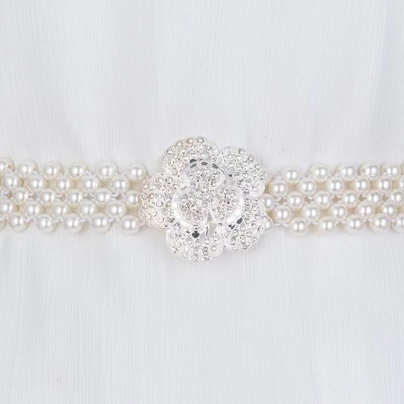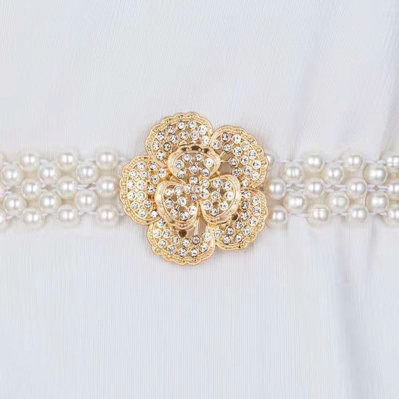 폭발적인 진주 허리 체인 여성의 한국 스타일 패션 얇은 벨트 라인 석 꽃 허리 장식 달콤한 우아한 의류 액세서리 스커트