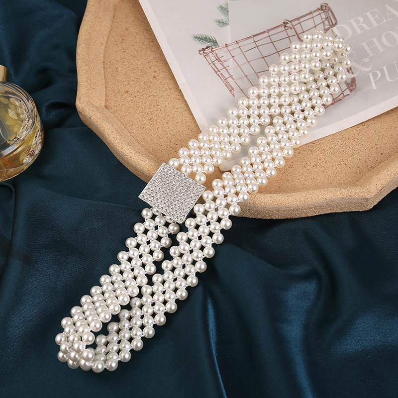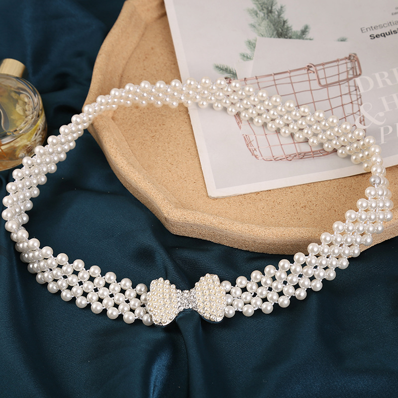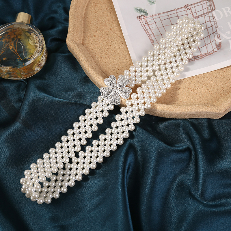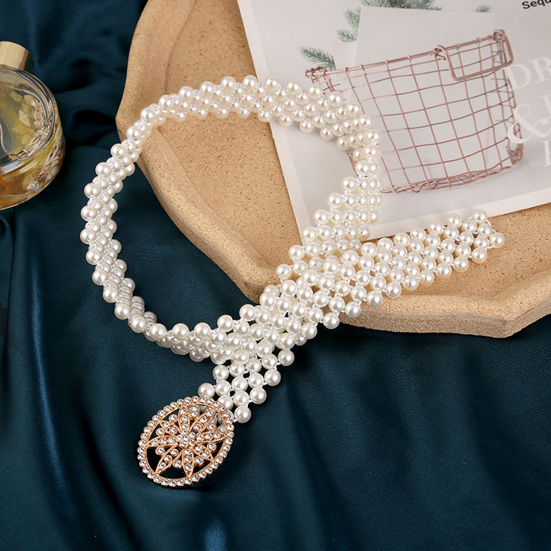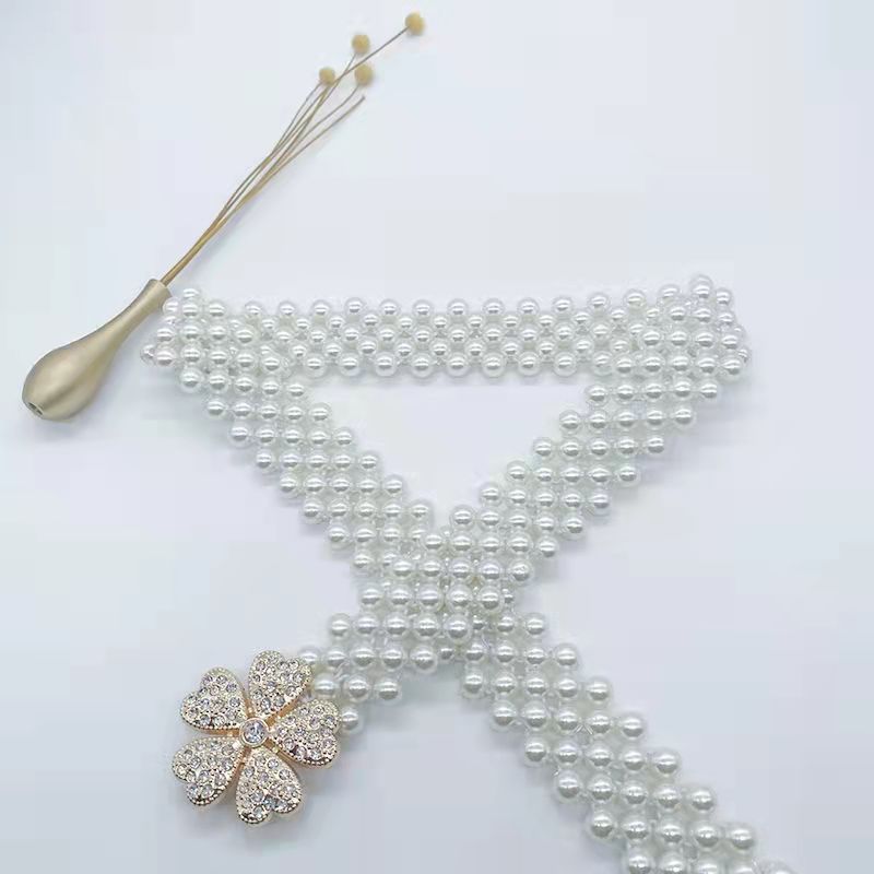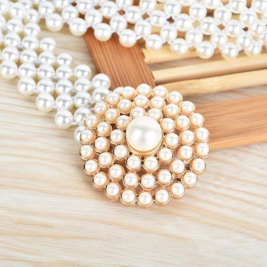 폭발적인 진주 허리 체인 여성의 한국 스타일 패션 얇은 벨트 라인 석 꽃 허리 장식 달콤한 우아한 의류 액세서리 스커트