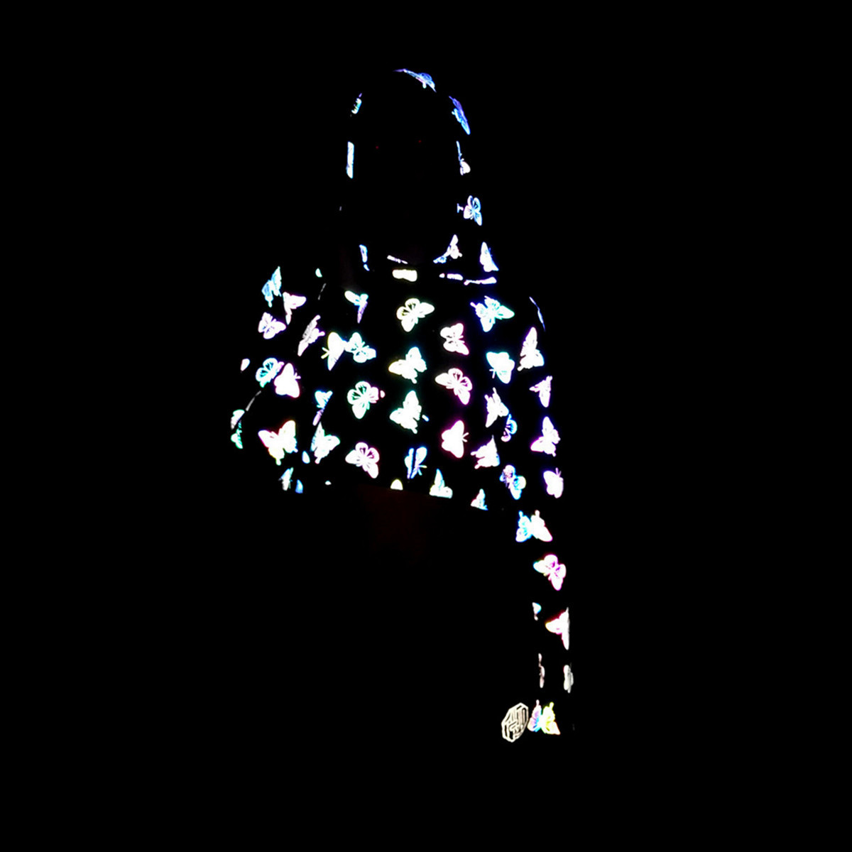 크로스 보더 뉴 하이 웨이스트 배꼽 7 색 나비 풀오버 반사 스웨터 유럽과 미국의 짧은 후드 탑 여성스토어 가기