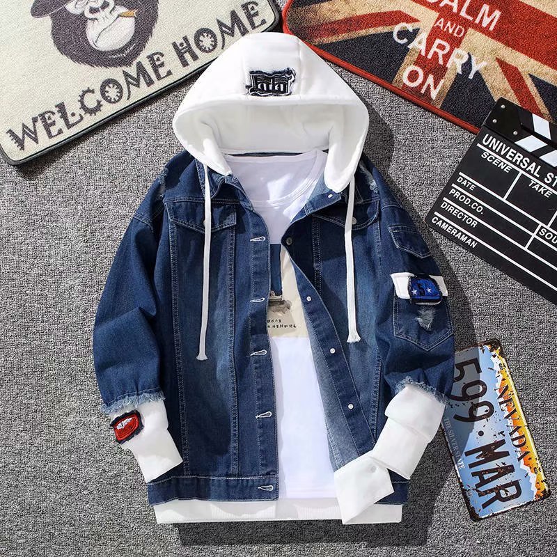 봄과 가을 새로운 패션 브랜드 데님 재킷 남자의 한국 스타일 유행 학생 잘 생긴 캐주얼 재킷 남자의 루즈한 탑