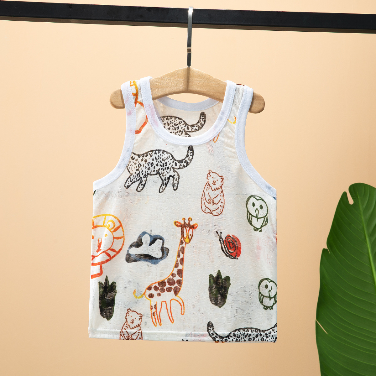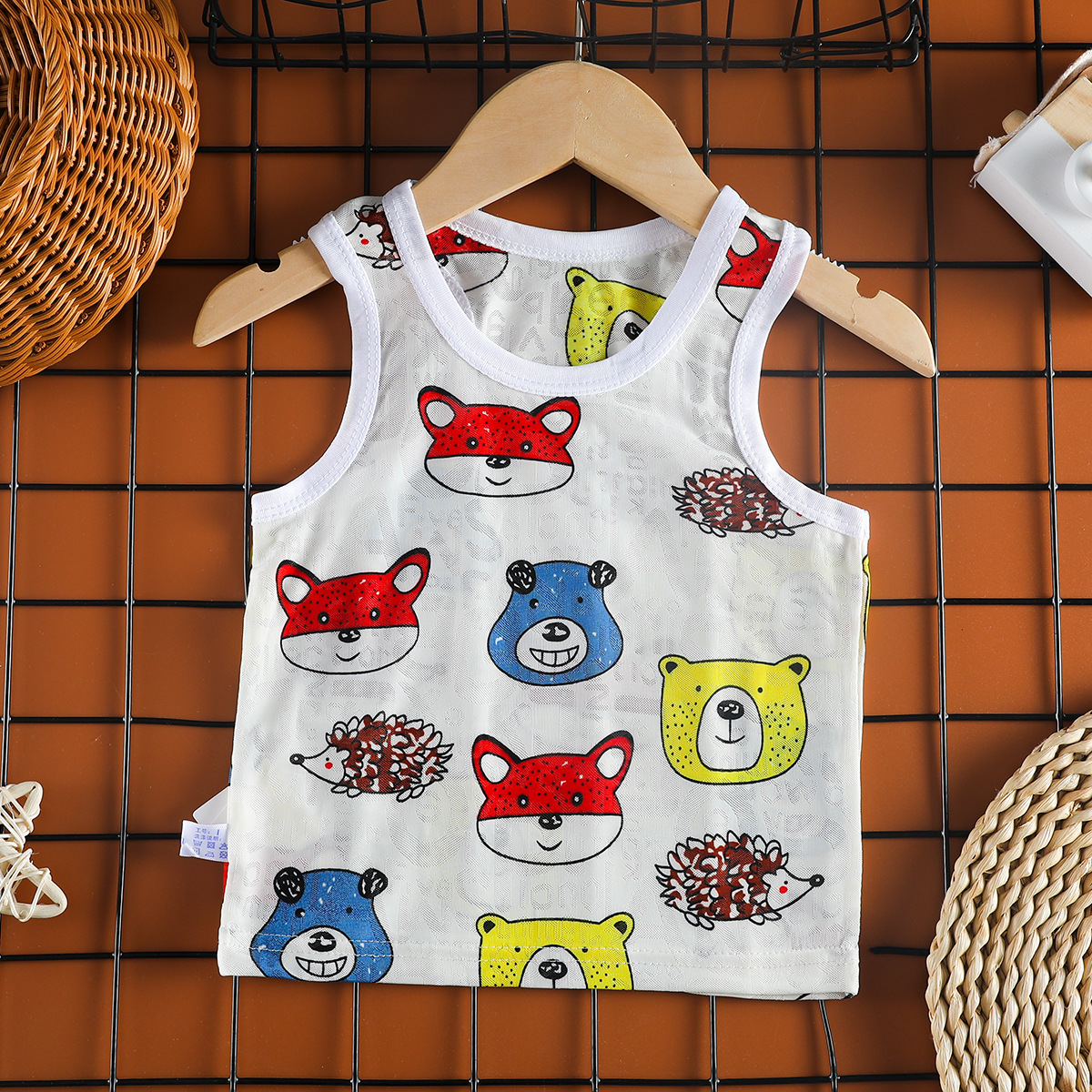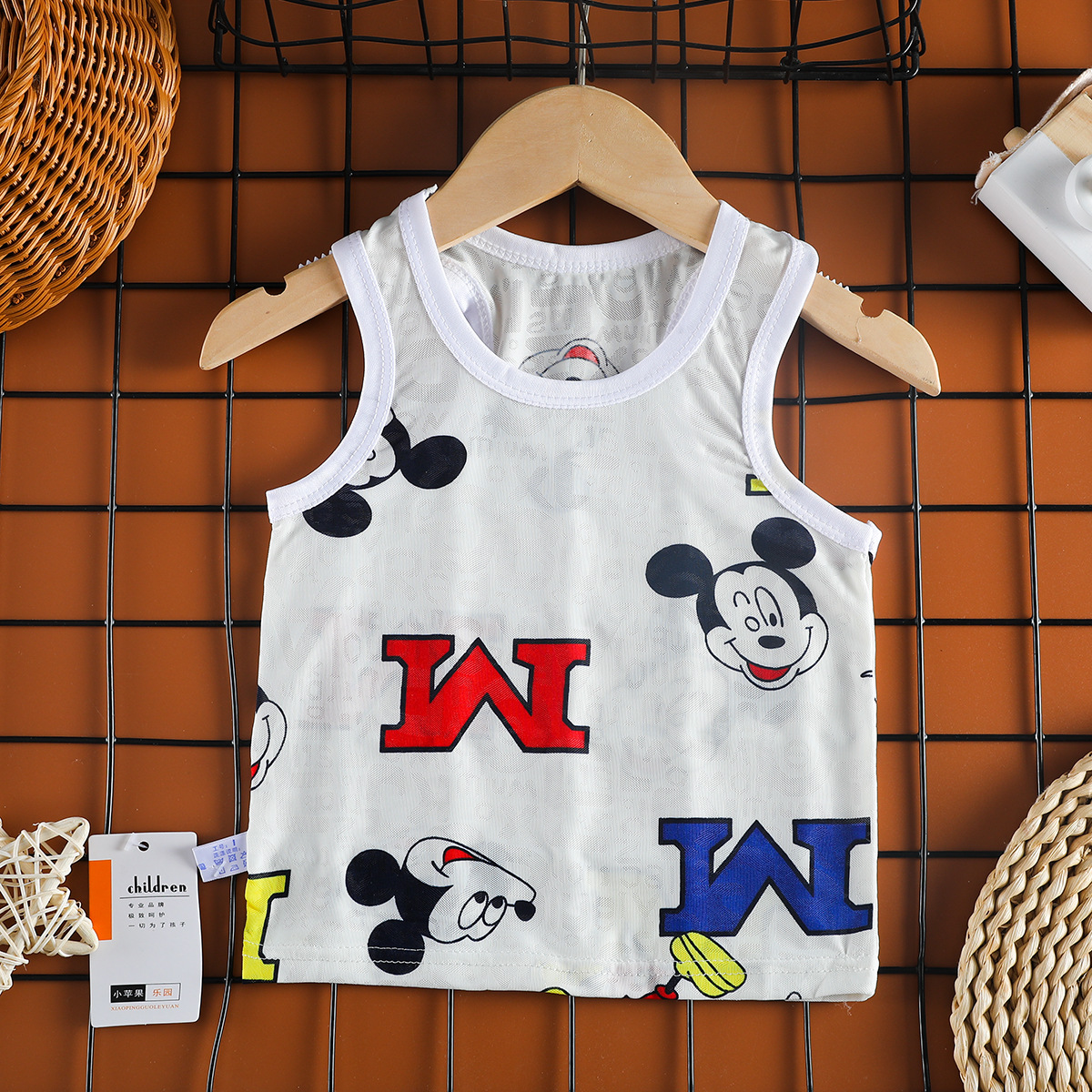 소년의 얼음 실크 조끼 여름 얇은 어린이 메쉬 중공 민소매 탑 만화 유행 어린이 스포츠 운동복