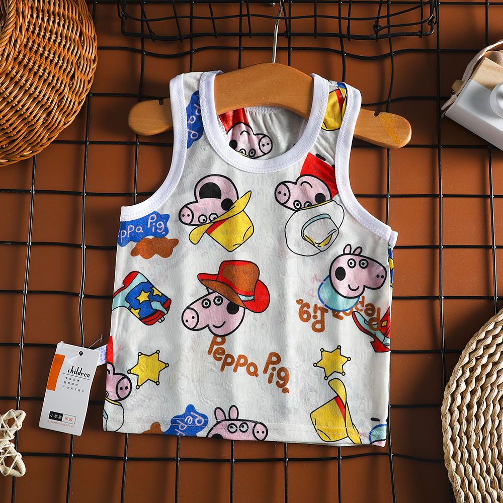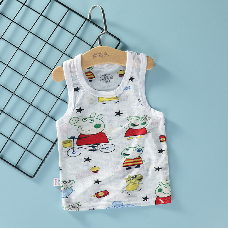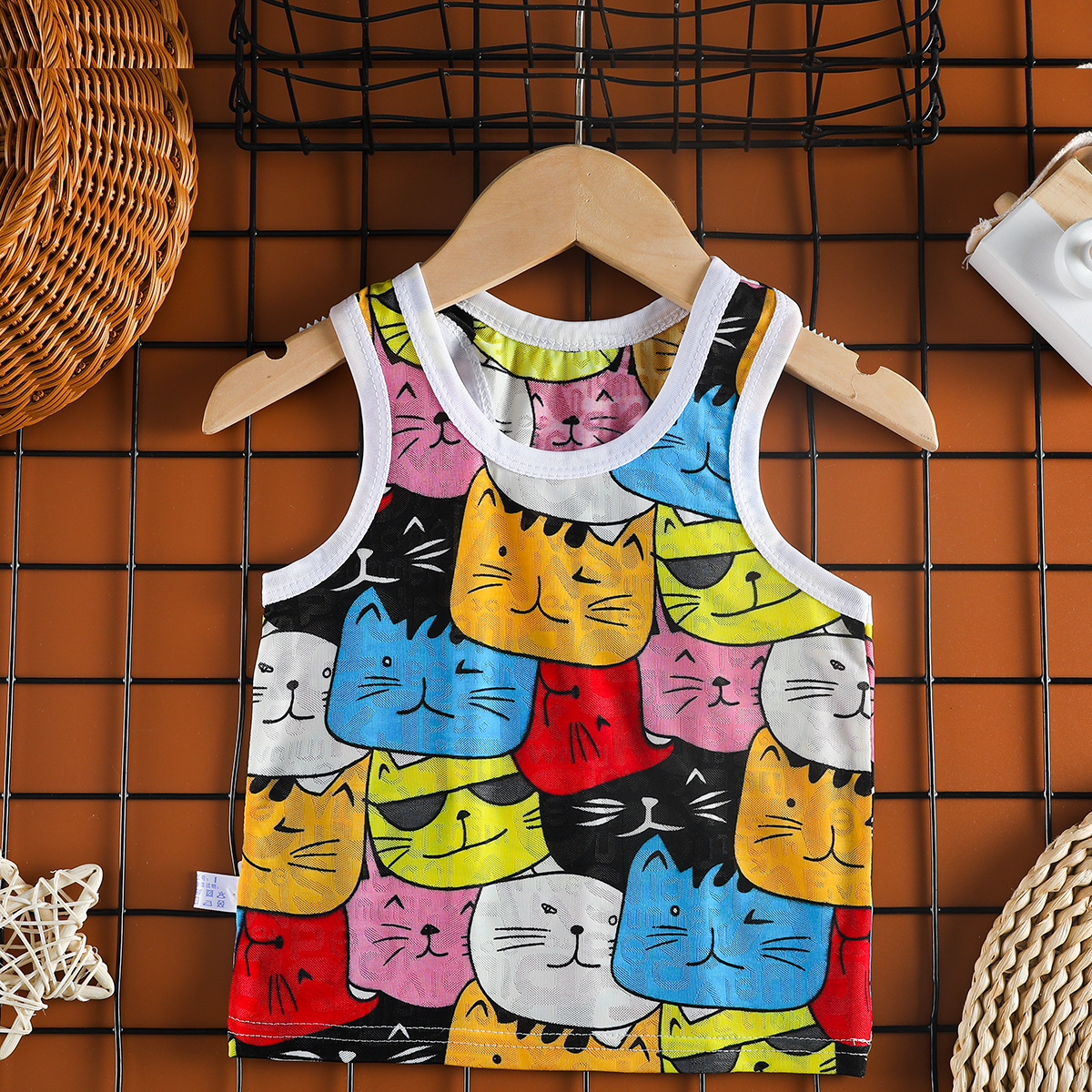 소년의 얼음 실크 조끼 여름 얇은 어린이 메쉬 중공 민소매 탑 만화 유행 어린이 스포츠 운동복