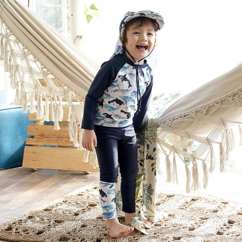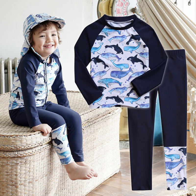 소년 분할 수영복 긴팔 비치 자외선 차단제 속건 만화 학생 귀여운 아기 온천 수영복