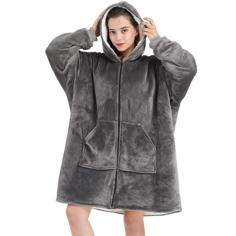 두꺼운 더블 레이어 게으른 담요 후드 지퍼 TV 담요 양털 따뜻한 집 옷 게으른 옷 TV 담요 봉제 땀스토어 가기