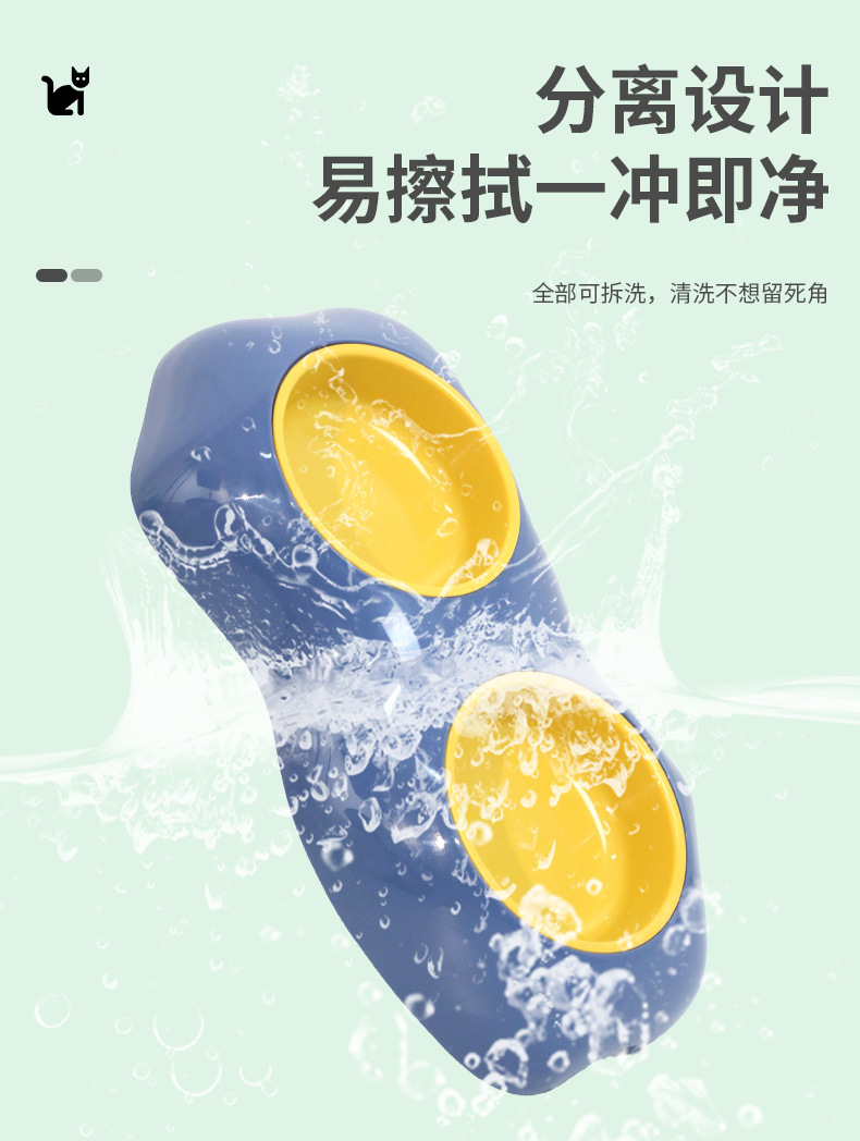 猫碗防黑下巴捂脸猫玻璃宠物双碗大口径加厚饮水碗猫粮碗现货批发
