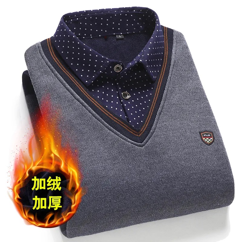 [기모 농축] 남자의 가짜 투피스 셔츠 칼라 스웨터 남자의 중년 및 노인 하의 스웨터