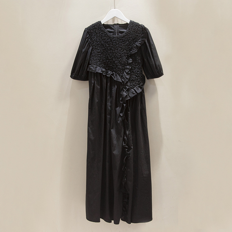 2021 년 봄과 여름을위한 새로운 무거운 자수 긴 반팔 원피스스토어 가기