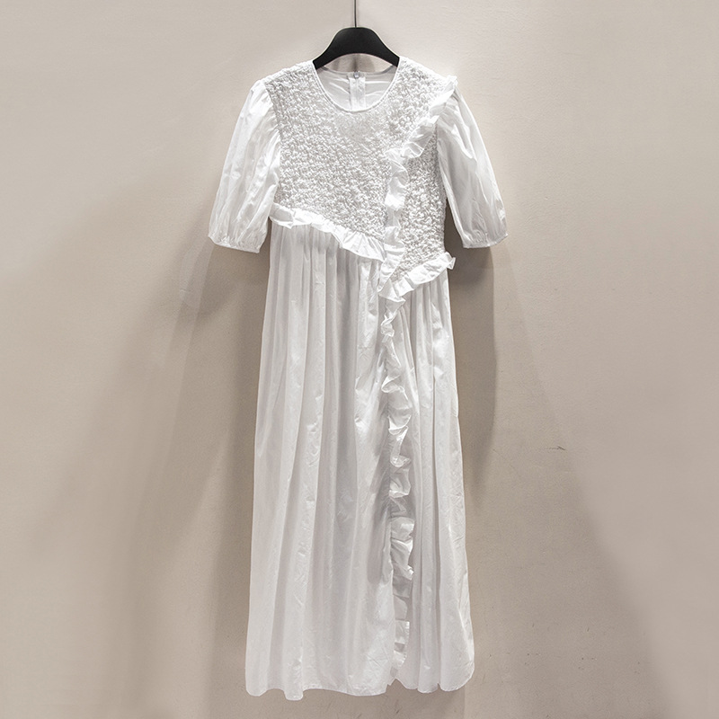2021 년 봄과 여름을위한 새로운 무거운 자수 긴 반팔 원피스