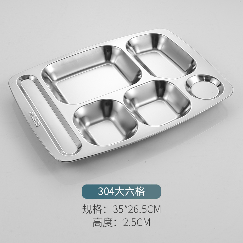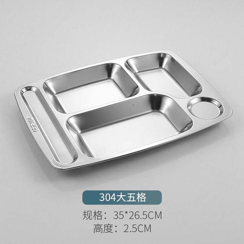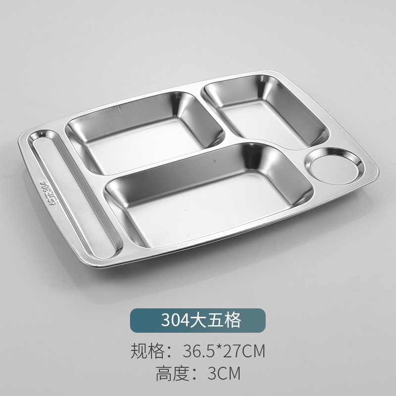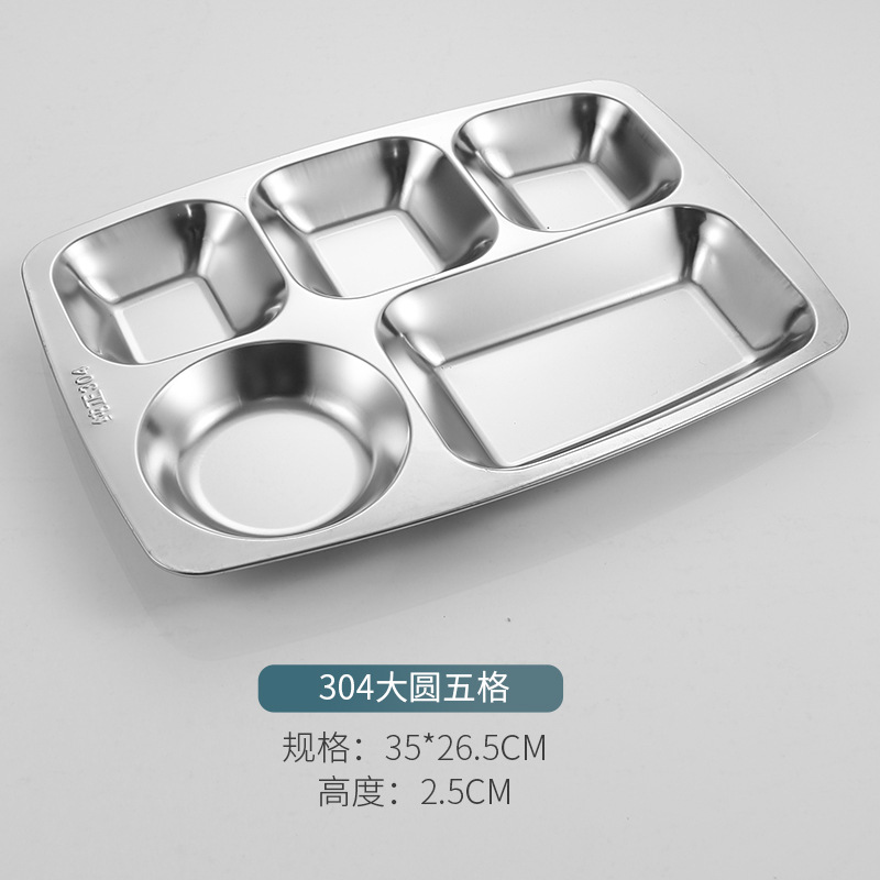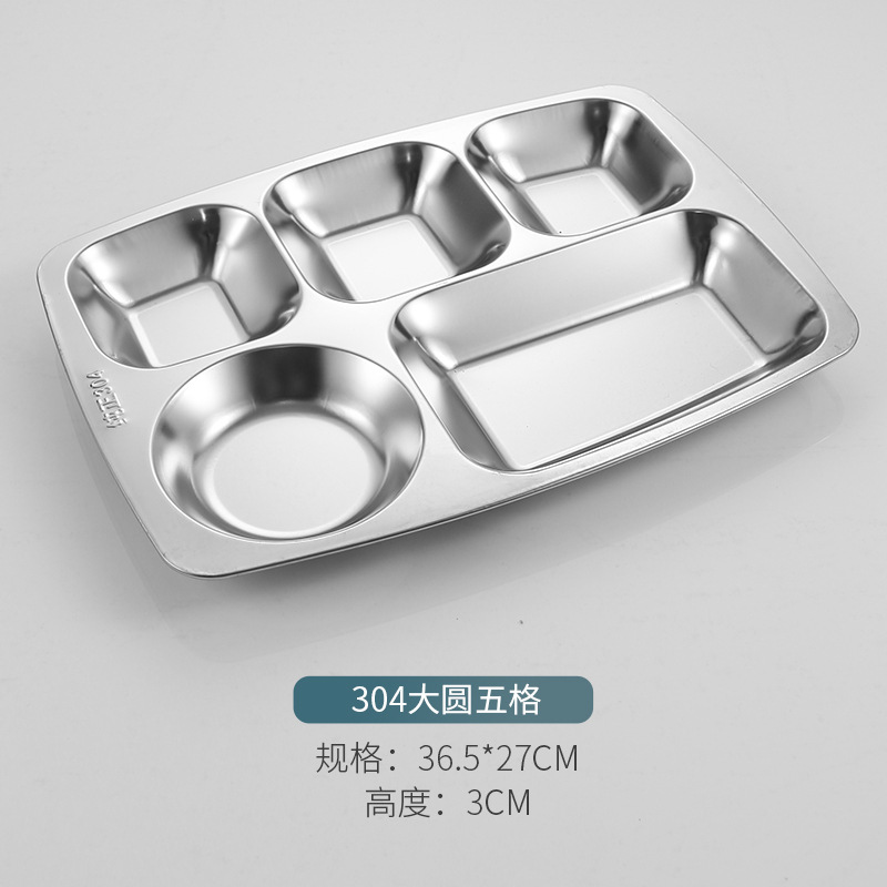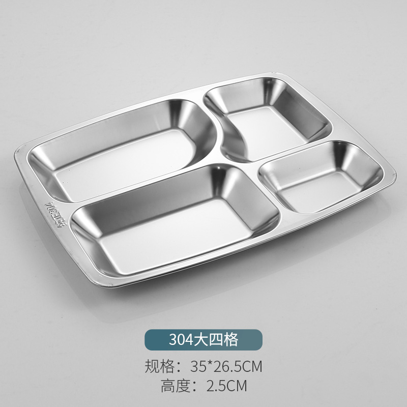 304 스테인레스 스틸 패스트 푸드 플레이트 두껍고 깊은 분할 플레이트 학교 공장 매점 식사 접시 성인 학생 분리 접시스토어 가기