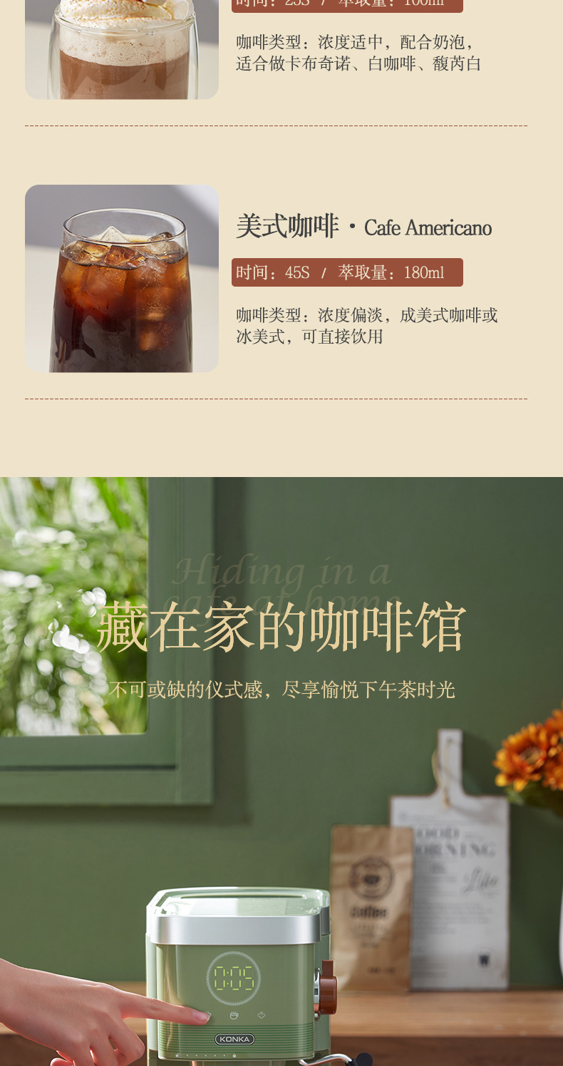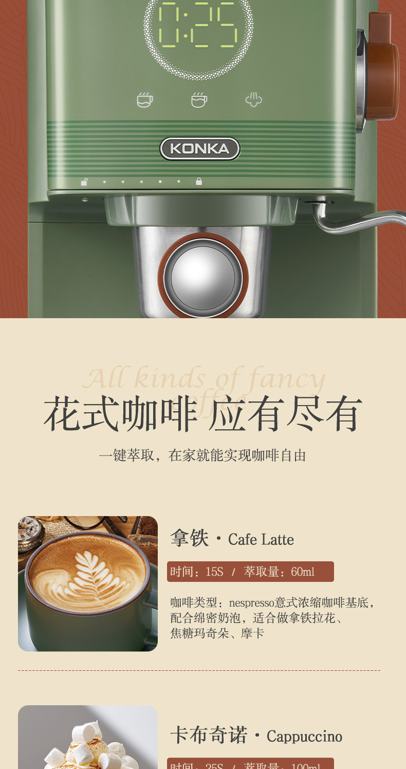 Konka 커피 머신 국경 간 이탈리아 반자동 추출 에스프레소 머신 가정용 소형 핸들 캡슐 커피 머신스토어 가기