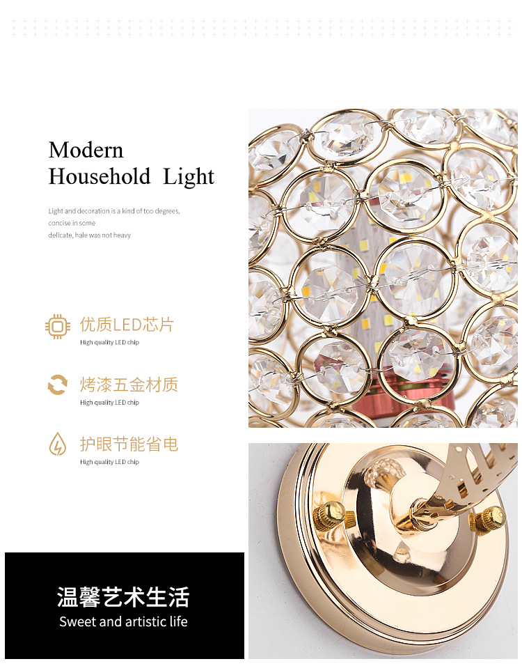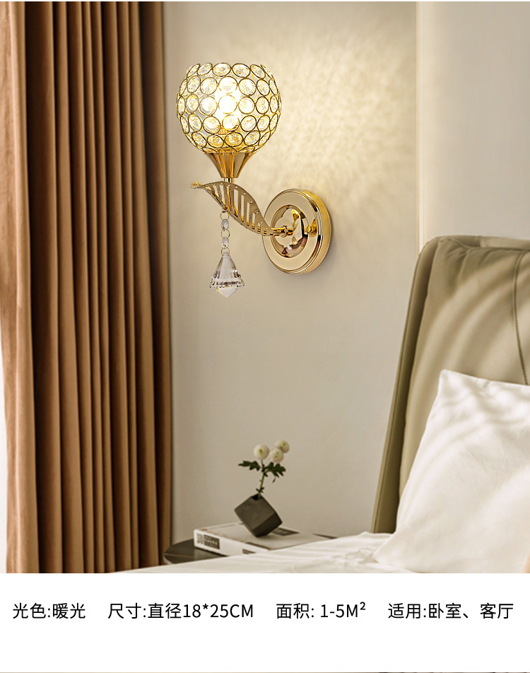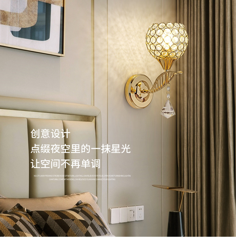 국경 크리스탈 벽 램프 현대 간단한 계단 복도 통로 침실 조명 럭셔리 미국 크리스탈 램프 스팟 도매스토어 가기