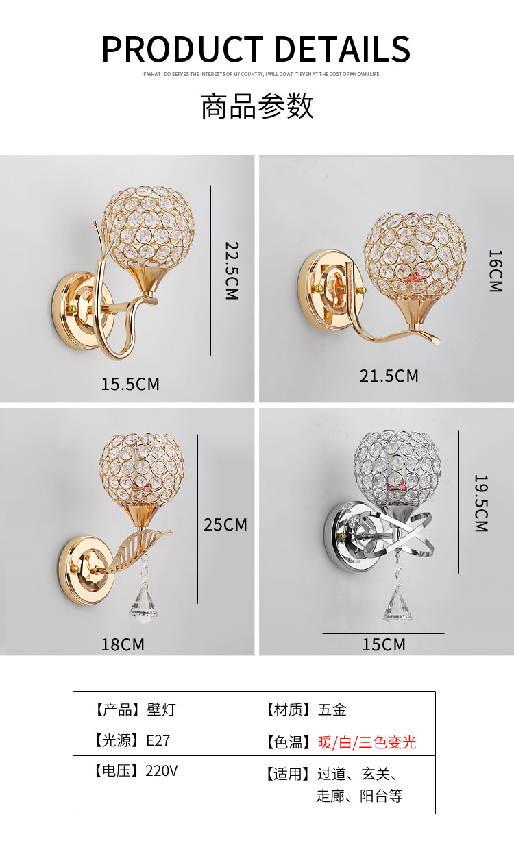 국경 크리스탈 벽 램프 현대 간단한 계단 복도 통로 침실 조명 럭셔리 미국 크리스탈 램프 스팟 도매