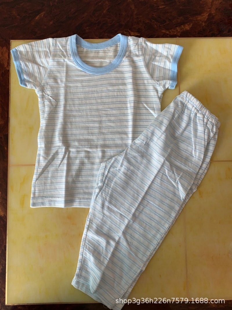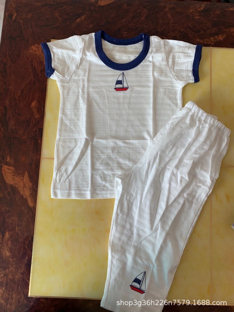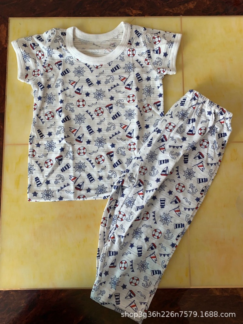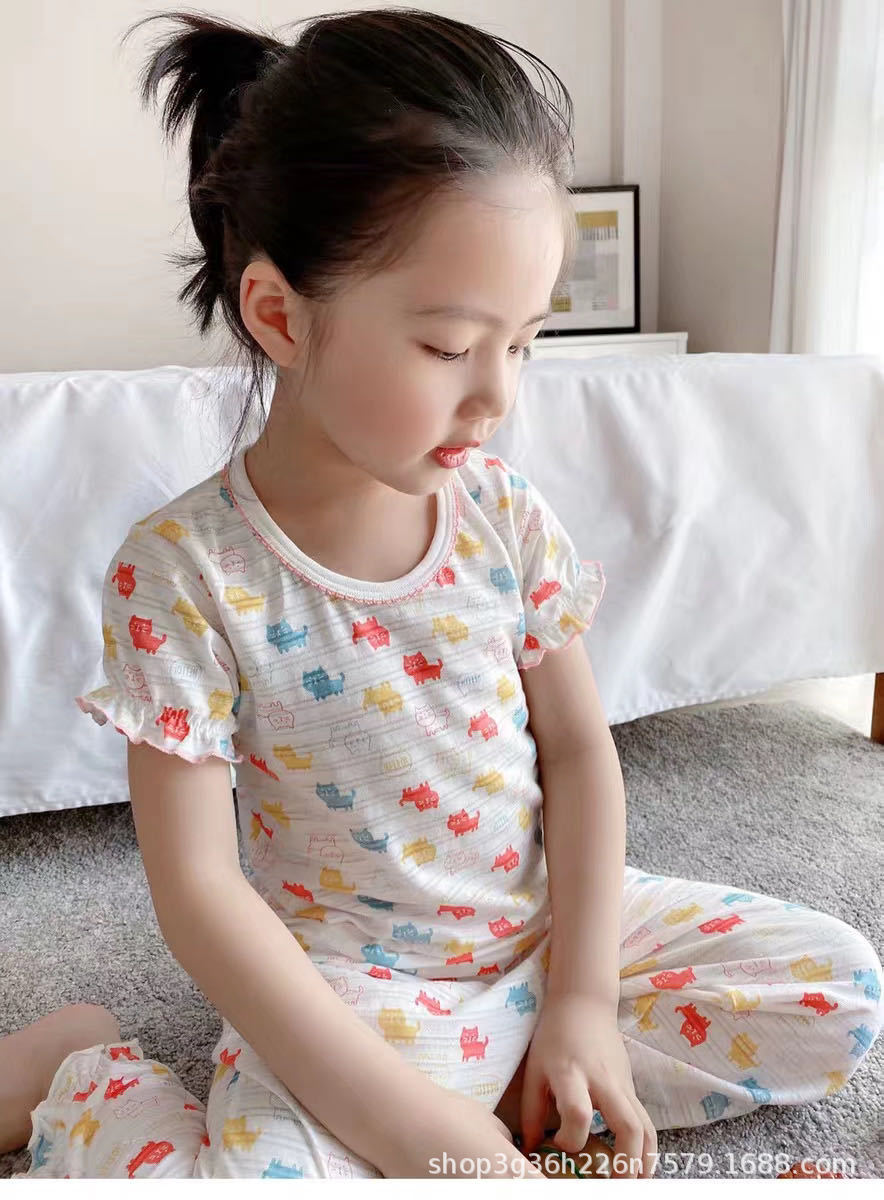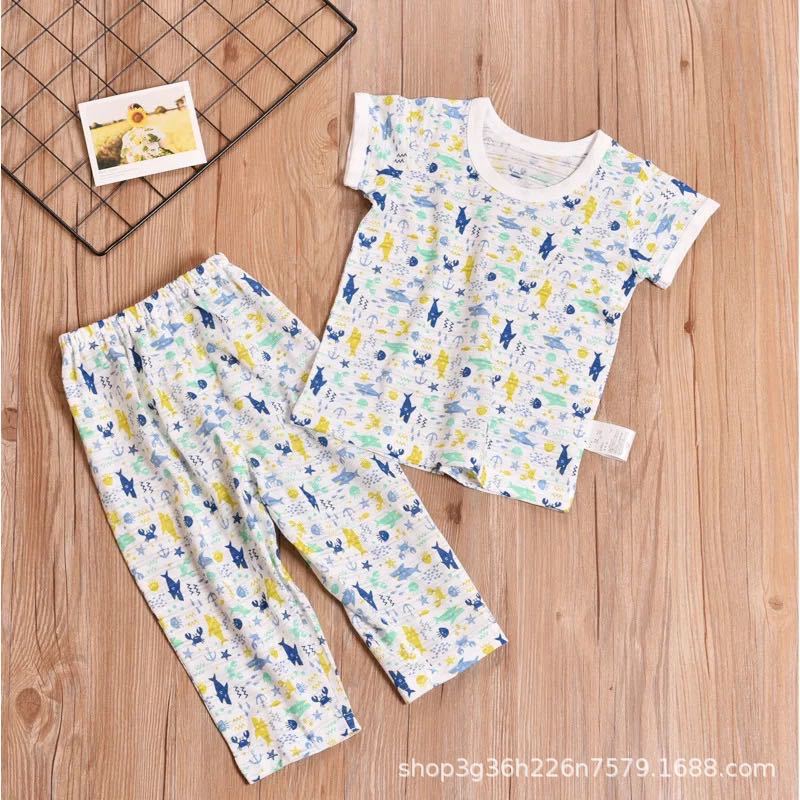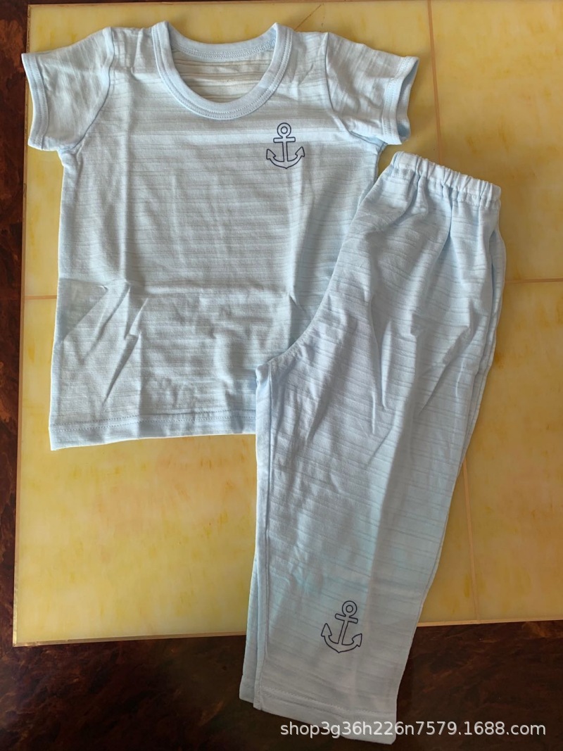 일본 스타일 세트, 신축성 있는 면 소재, 땀 흡수, 어린이 남아용 반팔 모기 방지 바지, 에어컨 가정복, 잠옷, 귀여운 디자인스토어 가기