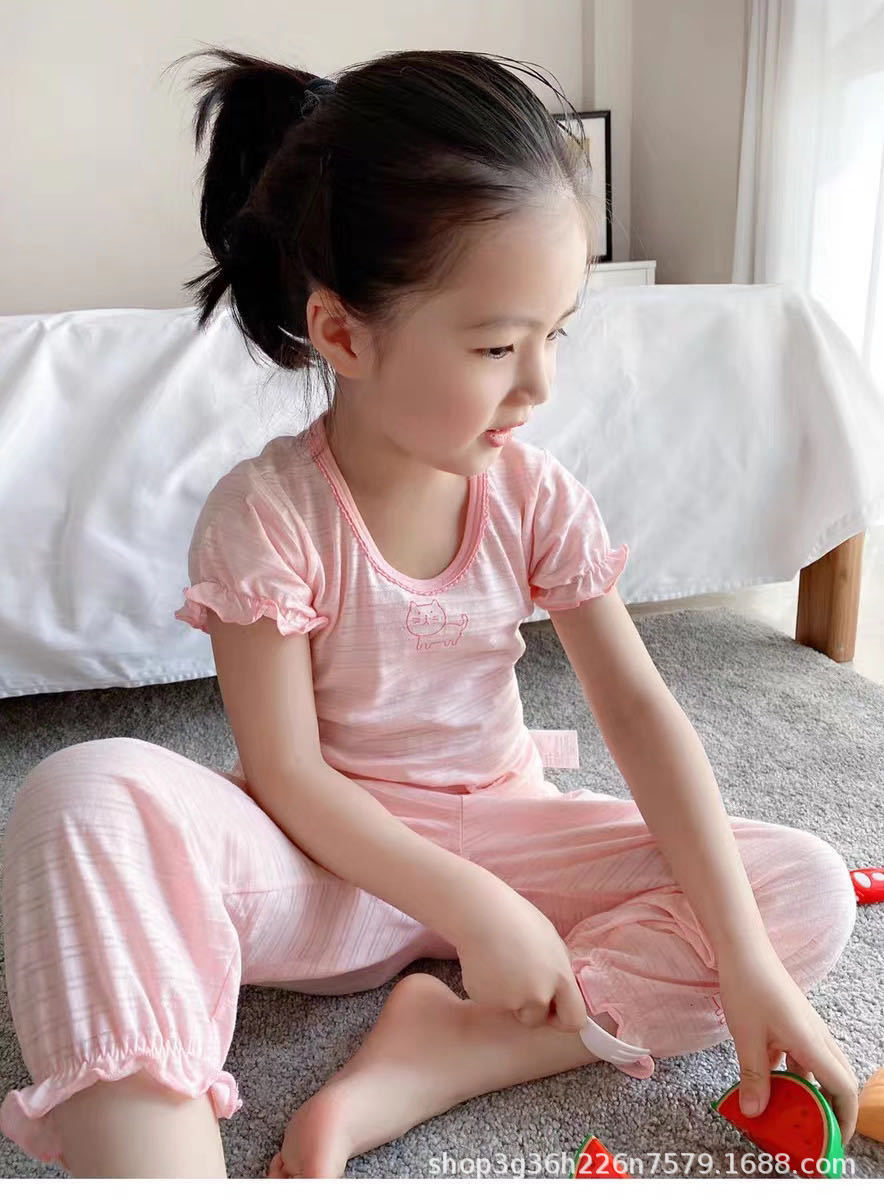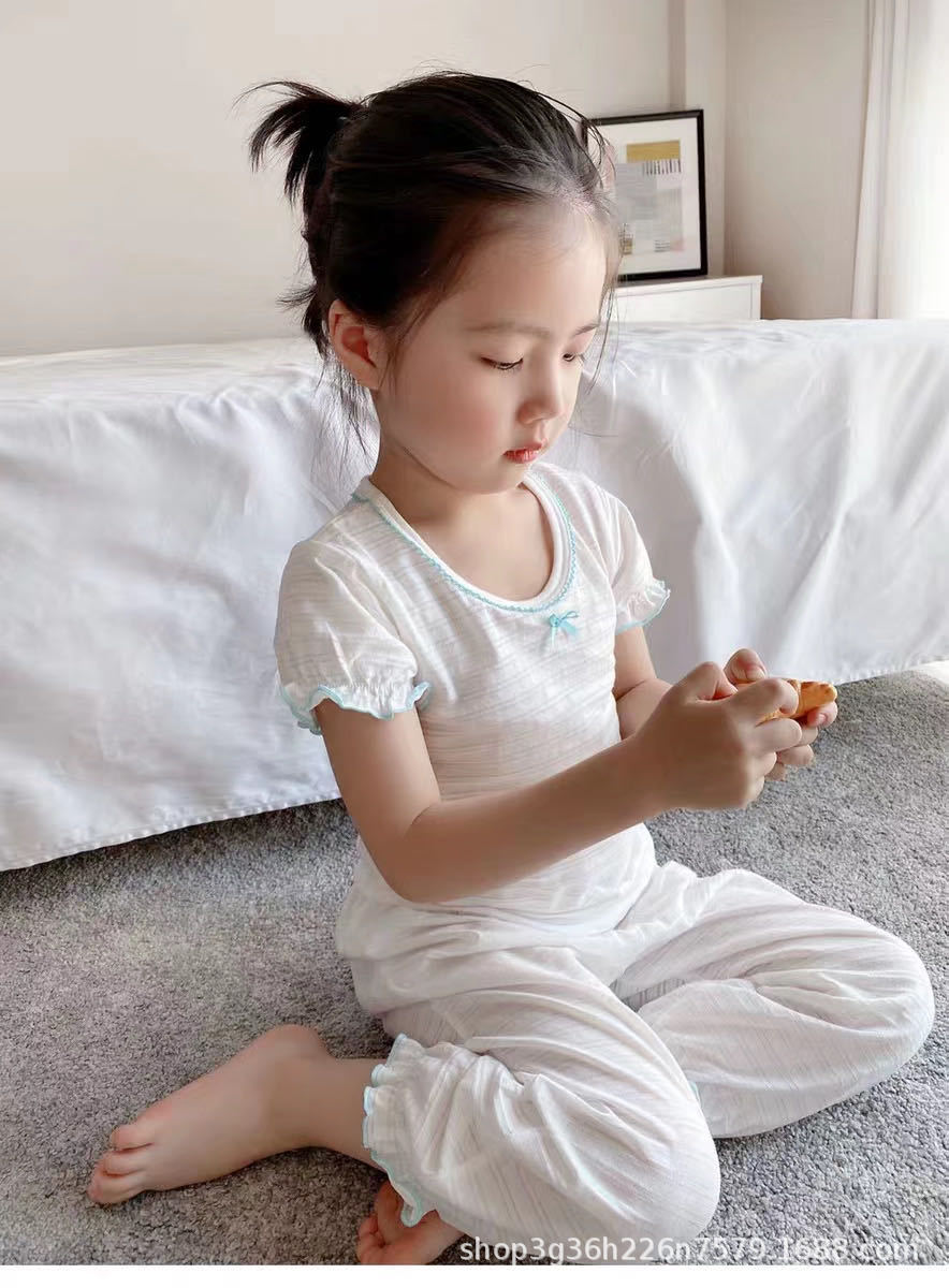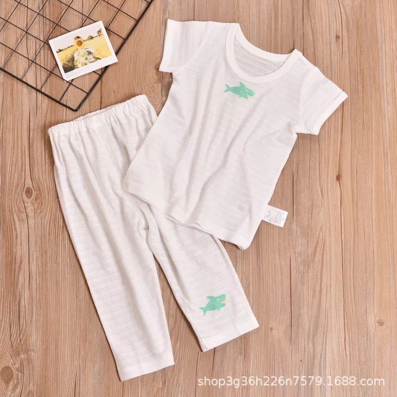 일본 스타일 세트, 신축성 있는 면 소재, 땀 흡수, 어린이 남아용 반팔 모기 방지 바지, 에어컨 가정복, 잠옷, 귀여운 디자인