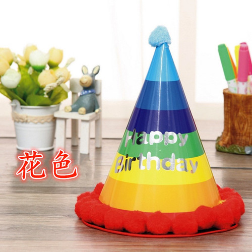 儿童生日卡通毛球帽子蛋糕帽成人宝宝一周岁帽子派对装饰品生日帽