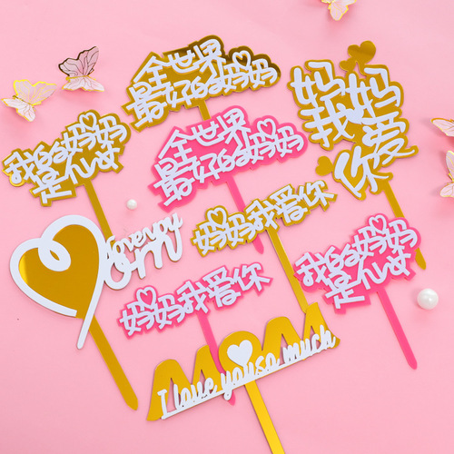母亲节蛋糕装饰亚克力蛋糕插牌MUM妈妈我爱你母亲节快乐蛋糕配件