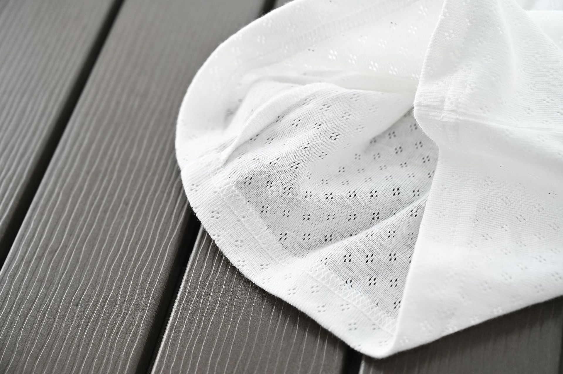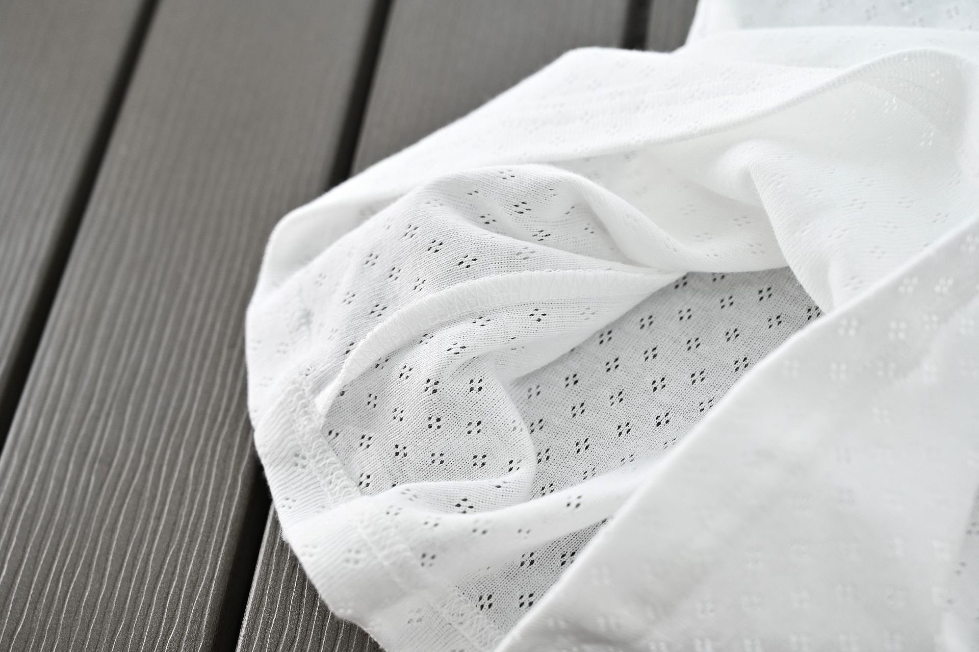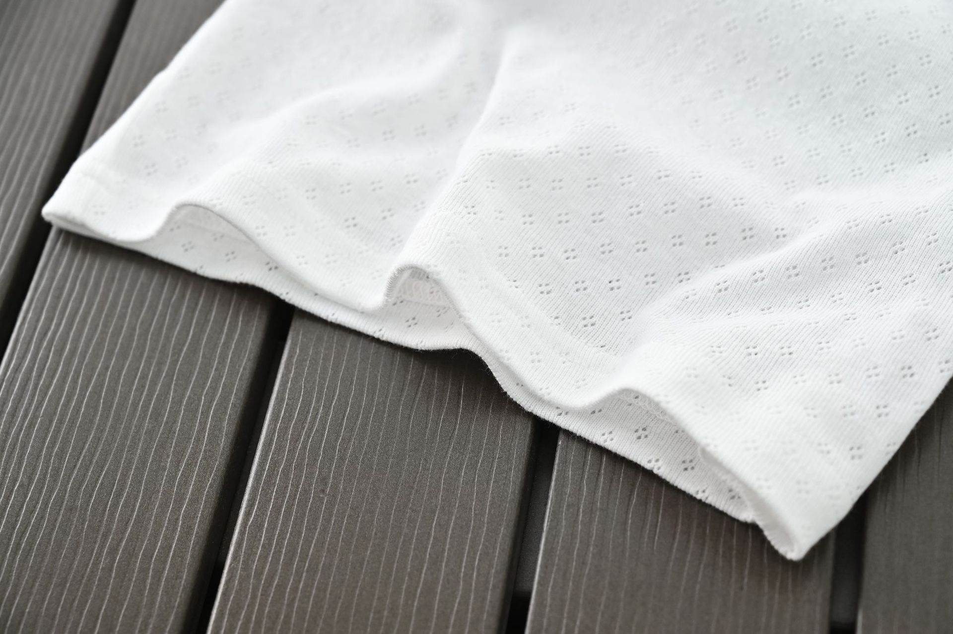 网眼提花炒鸡薄针织工艺,白色干净百搭,适合一年四季春夏秋冬家居打底。宝宝穿着不闷汗不紧绷日本日系风格每年销量TOP! 系列 .一件四季可做打底穿